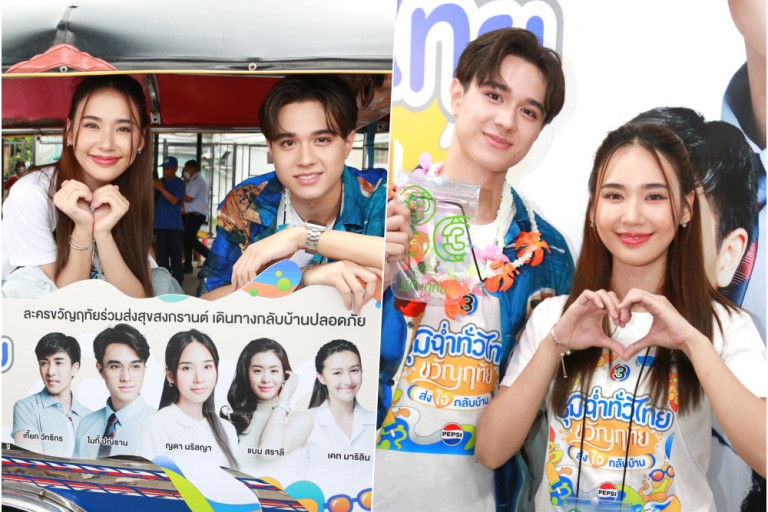 ฉ่ำรับวันสงกรานต์กันเลยทีเดียว สำหรับละครเรื่อง “ขวัญฤทัย” จากละครชุด “ดวงใจเทวพรหม” ทางช่อง 3 ที่ได้จัดกิจกรรมเดิน troop “ชุ่มฉ่ำทั่วไทย ขวัญฤทัยส่งใจกลับบ้าน” ไปเมื่อวันที่ 11 เม.ย. ที่ผ่านมา ร่วมส่งแฟน ๆ ช่อง 3 เดินทางกลับบ้านอย่างปลอดภัย ในช่วงเทศกาลสงกรานต์ นำขบวนส่งความสุขด้วยทีมนักแสดงนำจากในละคร ไมกี้-ปณิธาน, ญดา-นริลญา, แบม-สราลี, เกี๊ยก วัทธิกร และ เคท-มาริลิน ที่เปิดตัวมาพร้อมกับกลองยาว และขบวนรถตุ๊กตุ๊กที่ขับมาสร้างสีสันกันอย่างคึกคัก พร้อมแจกของที่ระลึก “ซองกันน้ำ” ไว้ให้แฟน ๆ ใส่เล่นน้ำสงกรานต์กันอย่างชุ่มฉ่ำ