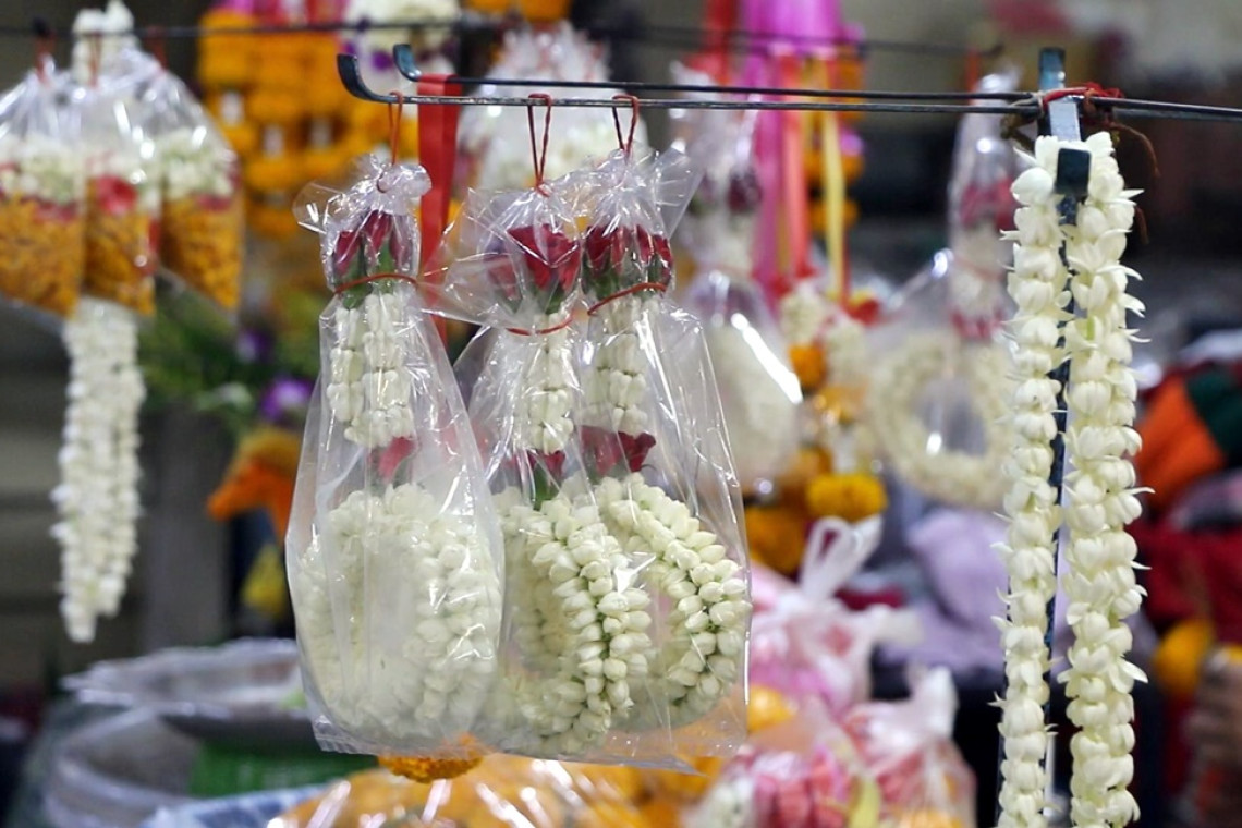 นายบัญชา กล่าวต่ออีกว่า ราคาดอกมะลิที่นำมาร้อยเป็นพวงมาลัยเริ่มต้นที่พวงละ 30 บาท สำหรับพวงใหญ่ที่ลูกค้ามาสั่งทำก็จะอยู่ที่พวงละ 300-500 บาท อย่างไรก็ตามขณะนี้ช่วงนี้เริ่มมีลูกค้ามาซื้อดอกไม้และพวงมาลัย อย่างต่อเนื่อง โดยคาดว่าพรุ่งนี้ ( 13 เม.ย.) คนน่าจะมาหาซื้อเยอะขึ้นเนื่องในวันปีใหม่ไทยเทศกาลสงกรานต์ปีนี้