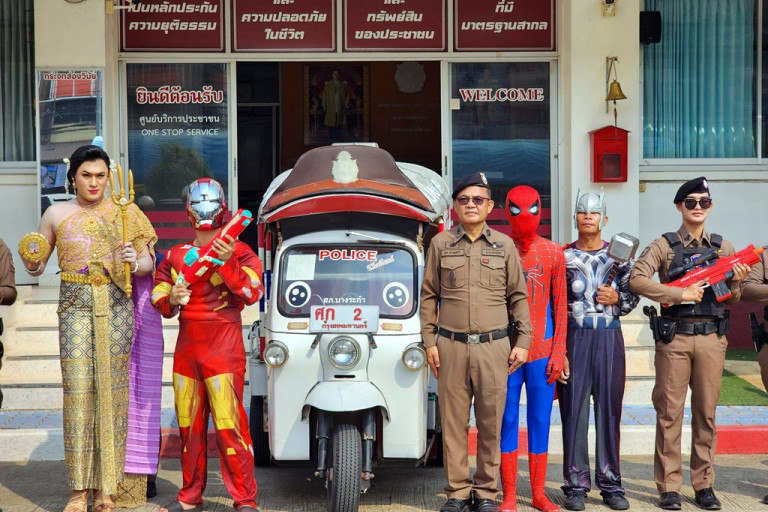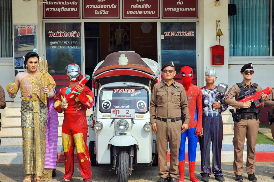 วันที่ 12 เม.ย.67 ผู้สื่อข่าวรายงานว่า พ.ต.อ.สมเกษม จารักษ์ ผกก.สภ.บางระกำ สั่งการให้เจ้าหน้าที่ตำรวจสายตรวจ , จราจร ในสังกัด สภ.บางระกำ ได้เตรียมพร้อมรับมือและนำเหล่าซุปเปอร์ฮีไร่ ประกอบด้วย ประกอบด้วย สไปเดอร์-แมน ,ฮัลค์ ยักษ์จอมพลัง, แบทแมน, กัปตันอเมริกา , ไอรอนแมน และ ตำรวจถอดเครื่องแบบแปลงร่างกลายเป็น นางสงกรานต์ ชื่อ " มโหทรเทวี " ทัดดอกสามหาว อาวุธคู่กาย พระหัตถ์ขวาถือจักร พระหัตถ์ซ้ายถือตรีศูล เสด็จประทับนกยูง ออกปฏิบัติการเพื่อสร้างสีสันให้กับนักท่องเที่ยว และ เชิญชวนคนไทยเล่นน้ำสงกรานต์ให้สนุก เพื่อเป็นการเผยแพร่ประชาสัมพันธ์การท่องเที่ยวในงานประเพณีสงกรานต์ ระหว่างวันที่ 13-15 เมษายน 2567 นี้ โดยจัดทีมสายตรวจรถตุ๊กตุ๊ก ซึ่งเป็นรถที่ถูกสั่งทำขึ้นมาเป็นพิเศษนำมาบริการนักท่องเที่ยวทั้งชาวไทยและชาวต่างชาติ มีชื่อเรียกว่า "จ่าตุ๊กบางระกำ " เพื่ออำนวยความสะดวกและดูแลความปลอดภัยในชีวิตและทรัพย์สินของประชาชน