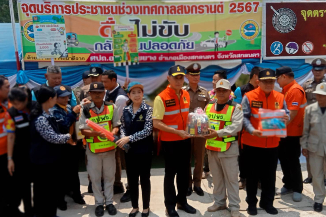 ผู้ว่าราชการจังหวัดสกลนคร ตรวจเยี่ยม ให้กำลังใจผู้ปฏิบัติหน้าที่ ประจำจุดตรวจ จุดบริการในช่วงเทศกาลสงกรานต์ ประจำปี 2567 ห่วงใยประชาชน ผู้ใช้รถ ใช้ถนน ปฎิบัติตามกฎจราจร ย้ำทุกจุดตรวจ จุดบริการ ด่านชุมชน ร่วมกันป้องปราม เมา ง่วง เพลีย ไม่ขับ เพื่อลดการสูญเสีย ลดอุบัติเหตุทางถนน