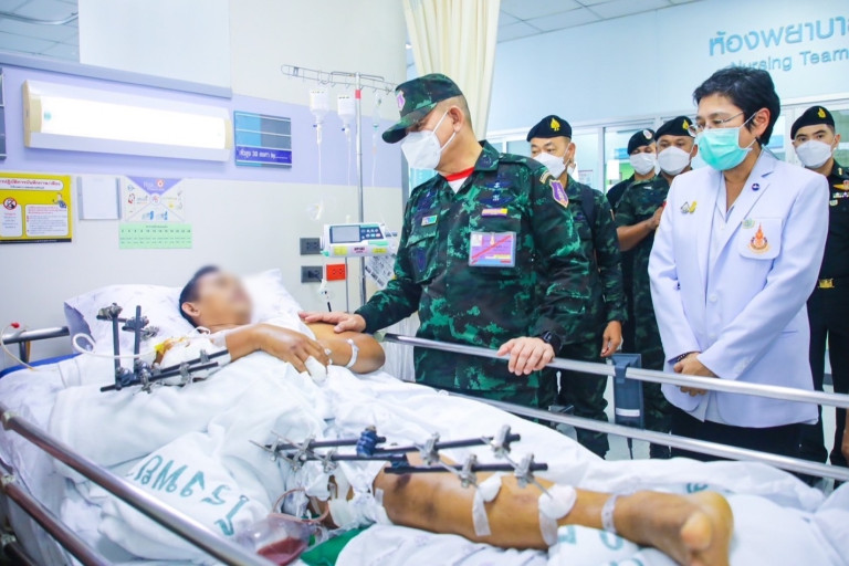 ซึ่งผู้บัญชาการทหารบกและคณะได้เดินทางไปเยี่ยมให้กำลังใจกำลังพลที่ได้รับบาดเจ็บระหว่างปฏิบัติหน้าที่ ณ โรงพยาบาลสงขลานครินทร์ (มอ.) อ.หาดใหญ่ จ.สงขลา และโรงพยาบาลปัตตานี อ.เมือง จ.ปัตตานี พร้อมนำกระเช้าเยี่ยมให้กำลังใจผู้ได้รับบาดเจ็บ ก่อนยืนยันถึงสิทธิและสวัสดิการต่างๆ ว่ากองทัพบกจะดูแลอย่างสุดความสามารถ พร้อมทั้งชื่นชมและให้กำลังใจแก่ครอบครัวทหารหาญที่เสียสละเพื่อรักษาความสงบเรียบร้อยให้แก่พี่น้องประชาชน ซึ่งเหตุการณ์ต่างๆ ที่เกิดขึ้นไม่มีใครอยากให้เกิดการบาดเจ็บหรือสูญเสีย แต่เมื่อทุกอย่างเกิดขึ้นแล้ว ขอให้ถือเป็นบทเรียนและนำมาทบทวนปรับแก้กันใหม่ เพราะภารกิจสร้างความปลอดภัยในพื้นที่ยังเดินหน้าต่อไปไม่มีวันหยุด แม้จะเหนื่อยหน่อยแต่มันคือหน้าที่