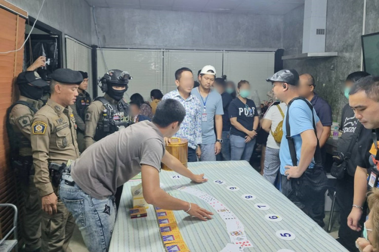 จากการเข้าตรวจสอบบ้านหลังดังกล่าวพบมีกลุ่มนักพนันจำนวนมาก กำลังนั่งล้อมวงเล่นพนันไพ่ป๊อกเด้ง จึงวางแผนกระจายกำลังเข้าปิดล้อม ก่อนแสดงตัวเข้าจับกุม เบื้องต้นสามารถจับกุมนักพนันได้ จำนวน 21 ราย เป็นชาย 3 ราย เป็นหญิง 18 ราย พร้อมของกลางเงินสดจำนวน 20 บาท ไพ่ 4 สำรับ พร้อมด้วยอาวุธปืนยี่ห้อรามาขนาด.380 จำนวน 1 กระบอก