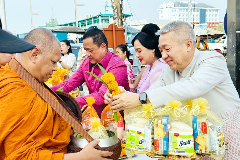 วันที่ 13 เม.ย.67 นายเจษฎา จิตรัตน์ ผู้ว่าราชการจังหวัดสุราษฎร์ธานี พร้อมด้วยนางดาเรศ จิตรัตน์ นายกเหล่ากาชาดจังหวัดสุราษฎร์ธานี รองผู้ว่าราชการจังหวัด หัวหน้าส่วนราชการ ทหาร ตำรวจ พนักงานรัฐวิสาหกิจ คณะผู้บริหารเทศบาลนครสุราฎร์ธานี องค์กรปกครองส่วนท้องถิ่น สมาชิกเหล่ากาชาด ตลอดจนประชาชนชาวจังหวัดสุราษฎร์ธานีทุกภาคส่วน ร่วมพิธีทำบุญตักบาตร ข้าวสารอาหารแห้ง แด่พระภิกษุสงฆ์ และสามเณร เนื่องในโอกาสวันสงกรานต์ 2567 ณ บริเวณสะพานนริศ อำเภอเมืองฯ จังหวัดสุราษฎร์ธานี เพื่อเสริมสร้างความเป็นสิริมงคลให้กับตนเองและครอบครัว และสร้างความรักความสามัคคีของคนในชาติ อีกทั้งยังเป็นการอนุรักษ์ประเพณี วัฒนธรรมอันดีงามของพุทธศาสนิกชนชาวไทยให้คงอยู่สืบไป