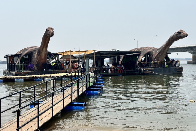 ที่แพไดโนเสาร์เรืองแสง จุดชมวิวสะพานเทพสุดา - แหลมโนนวิเศษ ตำบลโนนบุรี อำเภอสหัสขันธ์ จังหวัดกาฬสินธุ์ นางเฉลิมขวัญ หล่อตระกูล นายกองค์การบริหารส่วนจังหวัดกาฬสินธุ์ พร้อมด้วยนายบุญมี แก่นนาคำ นายกเทศมนตรีตำบลโนนบุรี นางนฤมล สิงห์เงา ปลัดเทศบาลตำบลโนนบุรี ลงเยี่ยมผู้ประกอบการร้านอาหารแพริมเขื่อนลำปาว และร้านค้าชุมชนชายหาดแหลมโนนวิเศษ