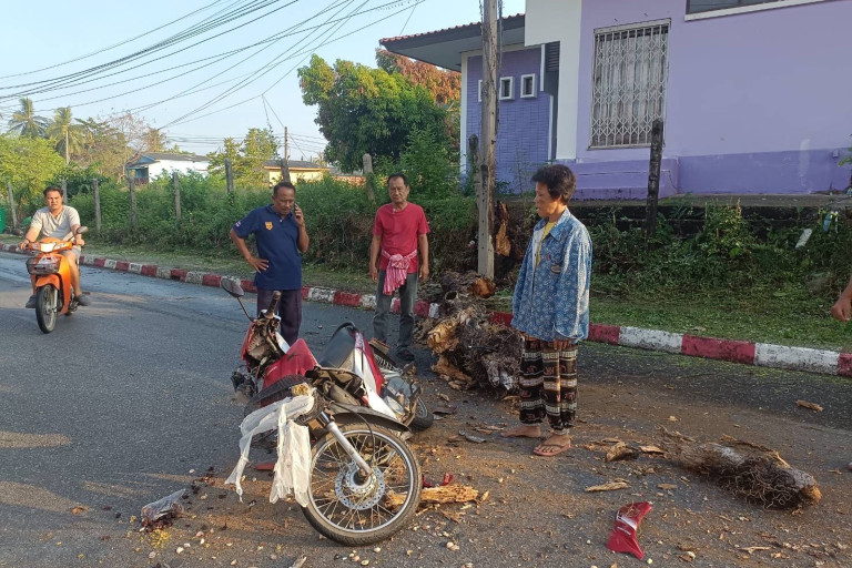 วันที่ 14 เมษายน 2567 ผู้สื่อข่าวรายงานว่า ช่วงเช้าที่ผ่านมา ป้าหนา อายุ 50 ปี ชาวสตูล แม่ค้าขายก๋วยเตี๋ยวเรือเจ้าดังในตัวเมืองสตูล ขณะขี่จยย.ฮอตด้าเวฟ 120 หมายเลขทะเบียน กนพ สตูล 251 กลับจากจับจ่ายซื้อของวัตถุดิบ เส้นก๋วยเตี๋ยว ผัก เนื้อ และเครื่องปรุงต่าง ๆ ที่ตลาดสดเทศบาลเมืองสตูล ขณะขี่จยย.ผ่านเส้นทางหน้าห้องสมุดประชาชนจังหวัดสตูล ตำบลพิมาน อำเภอเมือง จังหวัดสตูลมุมหัวโค้งสามแยกจู่ ๆ ก็มีท่อนไม้ขนาดใหญ่ของต้นตะแบก อายุประมาณกว่า 50 ปี ที่อยู่ข้างเสาไฟฟ้าริมถนน เกิดหักร่วงหล่นใส่ ป้าหนา ที่ขี่จยย.ผ่านมาพอดี