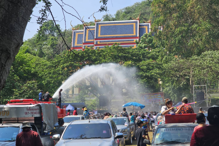 วันที่ 15 เม.ย.67 ผู้สื่อข่าวรายงานว่า บรรยากาศการเล่นสงกรานต์ใน อ. สัตหีบวันนี้ เป็นวันไหลของวัดเขาบายศรี ตำบลพลูตาหลวง อำเภอสัตหีบ จังหวัดชลบุรี ซึ่งมีประชาชนมาร่วมสรงน้ำพระ-ผู้สูงอายุตามประเพณี และเล่นน้ำจำนวนมาก