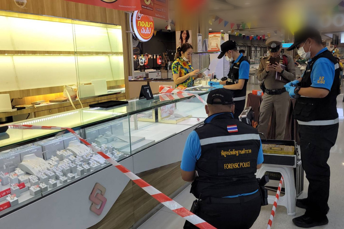 ที่เกิดเหตุ ภายในห้างสรรพสินค้าดังกล่าว เหตุเกิดขึ้นบริเวณ ชั้นที่ 2 ซึ่งเป็น ห้างทอง เจ้าหน้าที่ได้กั้นบริเวณจุดเกิดเหตุ พร้อม ตรวจสอบภาพจากกล้องวงจรปิด ซึ่งพบ ผู้ก่อเหตุ มาที่ห้างทอง ในเวลา 18.32 น. โดยเป็นชายรูปร่างสูง ผิวสีดำแดง สวมแมสปิดบังใบหน้า และ สวมเสื้อเชิ้ตลายดอก กางเกงขาสั้นสีขาว พร้อมสะพายกระเป๋า สีดำ ทำทีเข้ามาขอดูทองกับพนักงานของร้าน โดยมีการให้พนักงานนำสร้อยคอทองคำ หนัก 5 บาท ออกมาให้ดู ซึ่งทางพนักงานนำสร้อยคอออกมาให้ดู จำนวน 4 เส้น จากนั้นผู้ก่อเหตุก็หยิบสร้อยคอ หนัก 5 บาท จำนวน 1 เส้น ก่อนบอกอุบายให้พนักงานเอื้อมไปหยิบกระจกมาให้ ก่อนที่ผู้ก่อเหตุจะใช้จังหวะดังกล่าววิ่งหลบหนีไปทันที โดยคนร้ายได้สร้อยคอทองคำ น้ำหนัก 5 บาท ไป 1 เส้น ราคาประมาณ 210,000 บาท