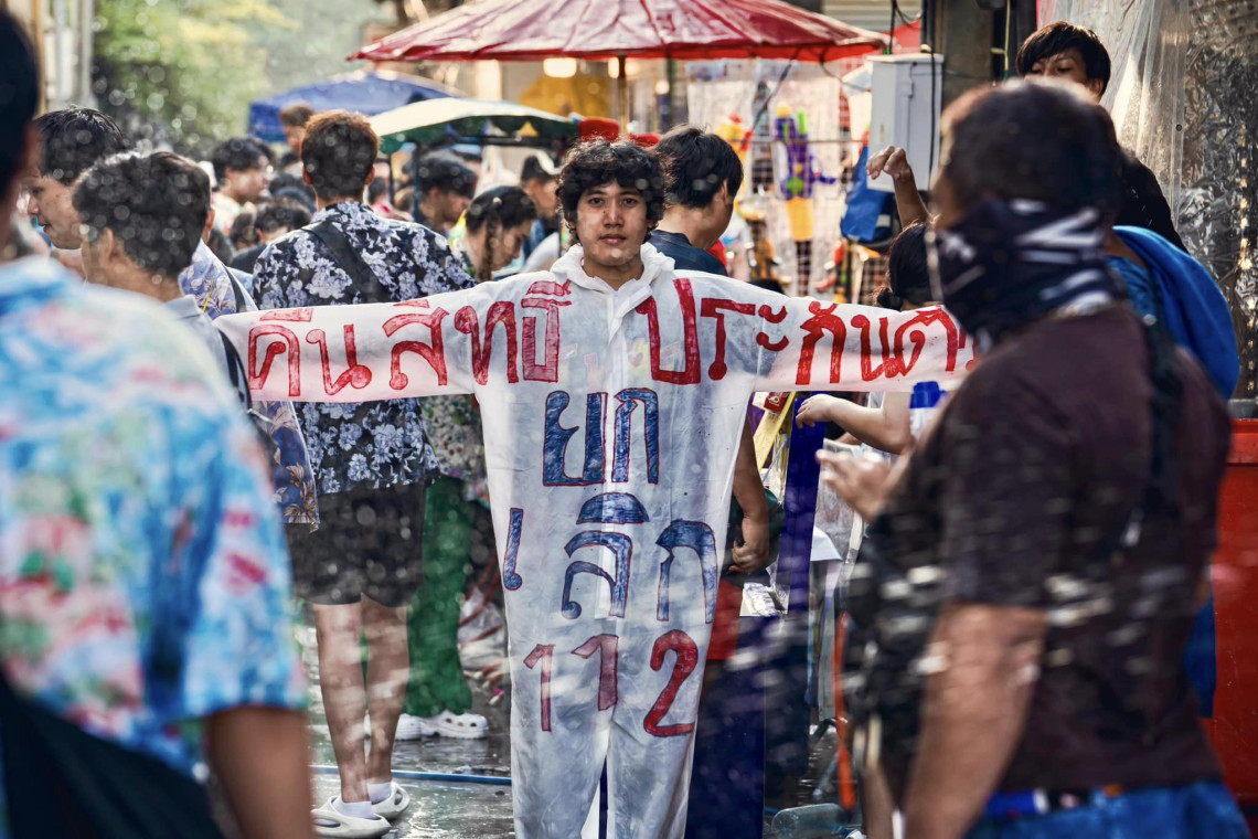 15 เมษา 67 เวลาประมาณ 17.00 น. ต๊ะ คทาธร นักกิจกรรมกลุ่มทะลุแก๊ส โผล่ถนนข้าวสาร ใส่ชุด PPE ที่มีข้อความเขียนว่า คืนสิทธิการประกันตัว ยกเลิก 112 และ Free our friends โดยเจ้าตัวได้ตะโกนระหว่างทำกิจกรรมว่า “สำหรับใครที่เห็นด้วยกับผม ในการคืนสิทธิในการประกันตัว ให้ฉีดน้ำใส่ผมได้เลย”
