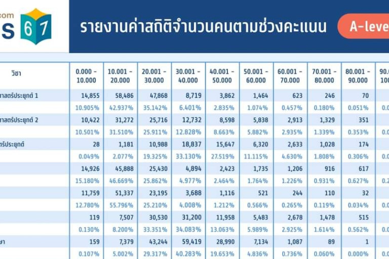 ผู้สื่อข่าวรายงานว่า วันนี้(16เม.ย.2567)ที่ประชุมอธิการบดีแห่งประเทศไทย หรือ ทปอ. ได้ประกาศผลรายงานค่าสถิติพื้นฐาน ของการสอบระบบผ่านคัดเลือกเข้าอุดมศึกษากลาง (TCAS) ในส่วนของการสอบ A-level เป็นที่เรียบร้อย โดยได้รายงานค่าสถิติพื้นฐานการสอบ A-Level และค่าสถิติจำนวนคนตามช่วงคะแนน