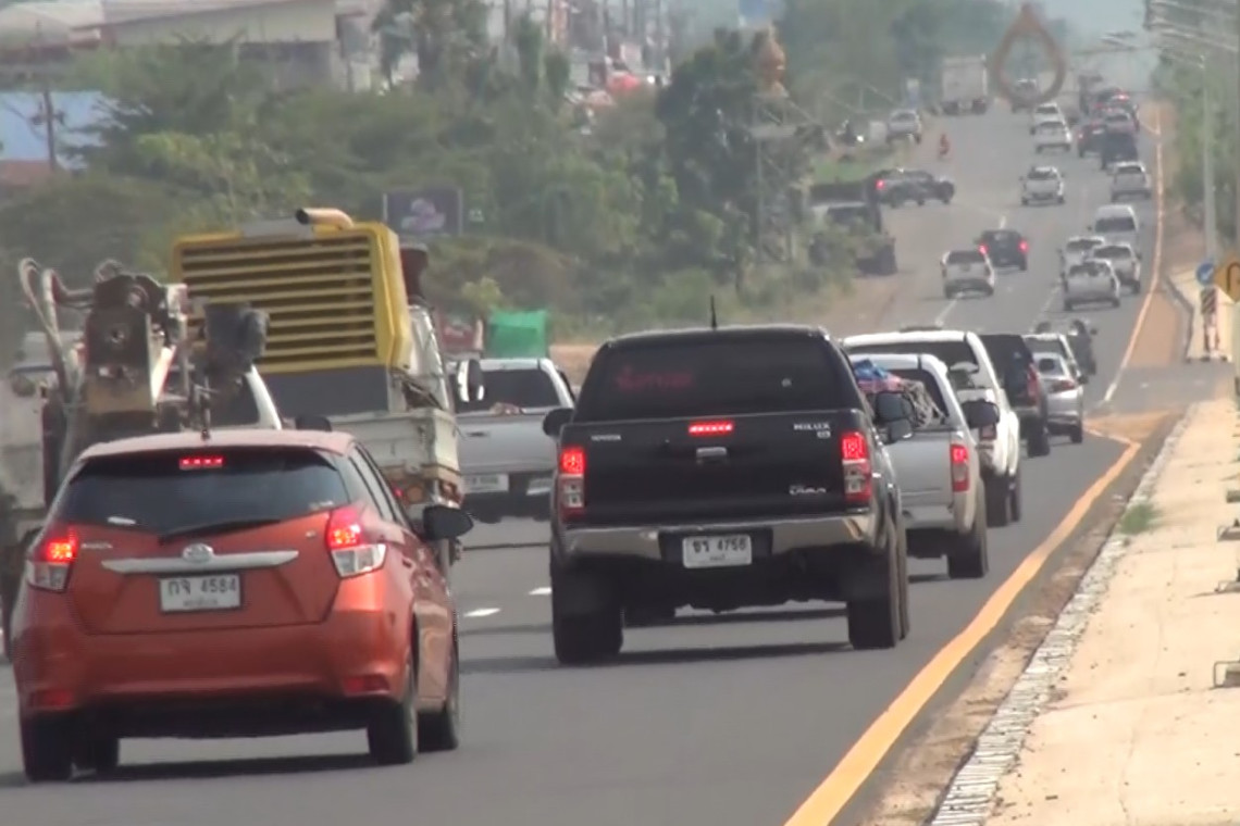 ชาวอีสานทะลักกลับกรุงฯ วันหยุดสุดท้าย ทางหลวงสาย 348 ช่วง อ.โนนดินแดง จ.บุรีรัมย์ มุ่งหน้าสู่ภาคกลาง - ตะวันออก มีรถสัญจรหนาแน่นตลอดทั้งวัน ขณะผู้เดินทางที่ต้องนั่งท้ายกระบะเตรียมอุปกรณ์บังแดด และพกน้ำติดตัวไว้ดื่มระหว่างทางป้องกันภาวะฮีทสโตรกเพราะอากาศร้อนจัด