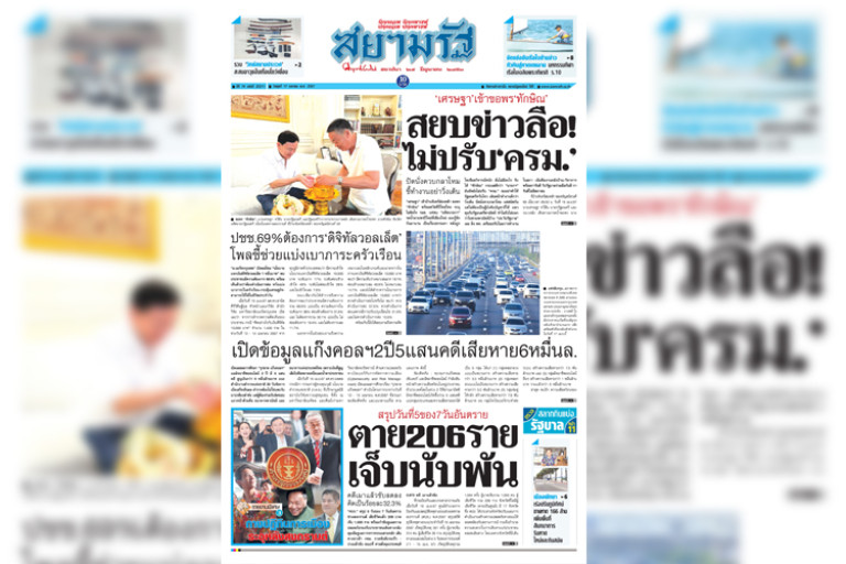 หน้า 1 หนังสือพิมพ์สยามรัฐรายวัน ฉบับวันพุธที่ 17 เมษายน 2567