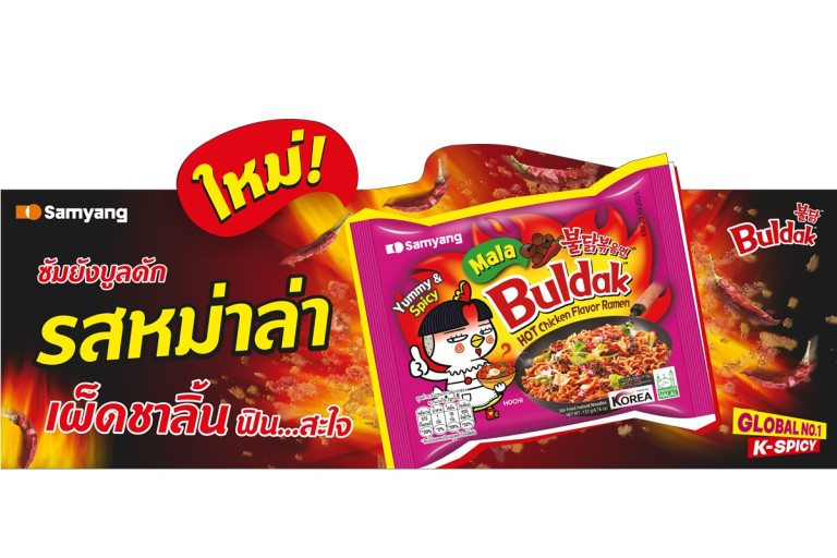 บริษัท ซีโน-แปซิฟิค เทรดดิ้ง (ไทยแลนด์) จำกัด ผู้นำเข้าและจัดจำหน่ายบะหมี่กึ่งสำเร็จรูปจากประเทศเกาหลีใต้ ภายใต้แบรนด์ “ซัมยัง” (Samyang) กับผลิตภัณฑ์ตระกูลบะหมี่แห้งไก่เผ็ด “ซัมยัง บูลดัก” เผยว่า “ผลิตภัณฑ์บะหมี่กึ่งสำเร็จรูปซัมยัง ในกลุ่มบูลดัก หรือบะหมี่แห้งไก่เผ็ด (Hot Chicken Flavor Ramen) ถือครองยอดขายอันดับหนึ่งตลาดบะหมี่แห้งแบบเผ็ดมาอย่างยาวนานตั้งแต่ปี 2562 ซึ่งสร้างความแปลกใหม่ให้กับตลาดผู้บริโภคบะหมี่กึ่งสำเร็จรูปด้วยบะหมี่ระดับพรีเมียมที่มีเอกลักษณ์ด้านรสชาติความเผ็ดที่เข้มข้นแบบฉบับเกาหลี ที่ครองใจผู้บริโภคชาวไทยมายาวนานตั้งแต่เปิดตัวในตลาดครั้งแรก และจากกระแสความนิยมบริโภคหม่าล่าของผู้บริโภคคนไทยดังที่กล่าวไปข้างต้น ด้วยเหตุนี้แบรนด์ซัมยังจึงเล็งเห็นถึงโอกาสทางการตลาดประกอบกับ ซัมยัง บูลดัก เป็นแบรนด์บะหมี่แห้งไก่เผ็ดที่โด่งดังบนโลกโซเชียล และอยู่ในใจผู้บริโภคชาวไทยเมื่อนึกถึงบะหมี่เผ็ด การนำเอาต้นตำรับความเผ็ดเข้มข้นสไตล์เกาหลี มาผสานความเผ็ดจี้ดชาลิ้นสไตล์หม่าล่า จึงเกิดเป็น “ซัมยัง หม่าล่า บูลดัก ราเมง” ที่ผู้บริโภคจะได้ฟิน สะใจกับทั้งรสชาติไก่เผ็ดถึงเครื่องและเอกลักษณ์หม่าล่าเผ็ดชาลิ้น ที่เข้ากันอย่างลงตัว ความสนุกในการบริโภคบะหมี่กึงสำเร็จรูปที่รสชาติเผ็ดจะเข้ามาเติมความสุข และผ่อนคลายความเครียดด้วยรสชาติเผ็ดแซ่บ ชาลิ้น พร้อมสีสันและหน้าตาน่ารับประทานของบะหมี่แห้งไก่เผ็ดรสชาติหม่าล่า ที่ถูกออกแบบมาให้เป็นอินสตาแกรมมาเบิ้ลฟู้ดส์ (Instagrammable Food) ตอบโจทย์ Gen Z ที่ชอบทั้งความสนุกในการรับประทาน และมีวัฒนธรรมการถ่ายรูปก่อนบริโภค”