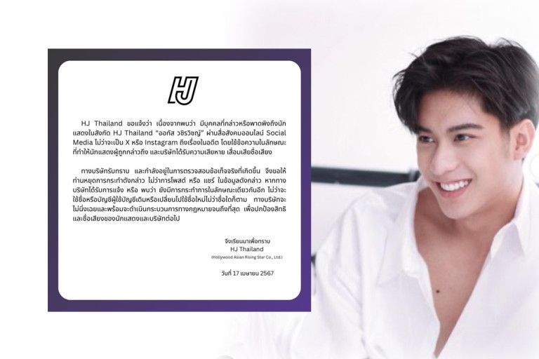 ผู้สื่อข่าวรายงานว่า ล่าสุด HJ Thailand ต้นสังกัดของนักแสดงหนุ่ม "ออกัส วชิรวิชญ์" ออกมาโพสต์ระบุว่า “ขอแจ้งว่า เนื่องจากพบว่า มีบุคคลที่กล่าว หรือพาดพิงถึงนักแสดงในสังกัด HJ Thailand "ออกัส วชิรวิชญ์" ผ่านสื่อสังคมออนไลน์ Social Media ไม่ว่าจะเป็น X หรือ Instagram ถึงเรื่องในอดีต โดยใช้ข้อความในลักษณะที่ทำให้นักแสดงผู้ถูกกล่าวถึง และบริษัทได้รับความเสียหาย เสื่อมเสียชื่อเสียง
