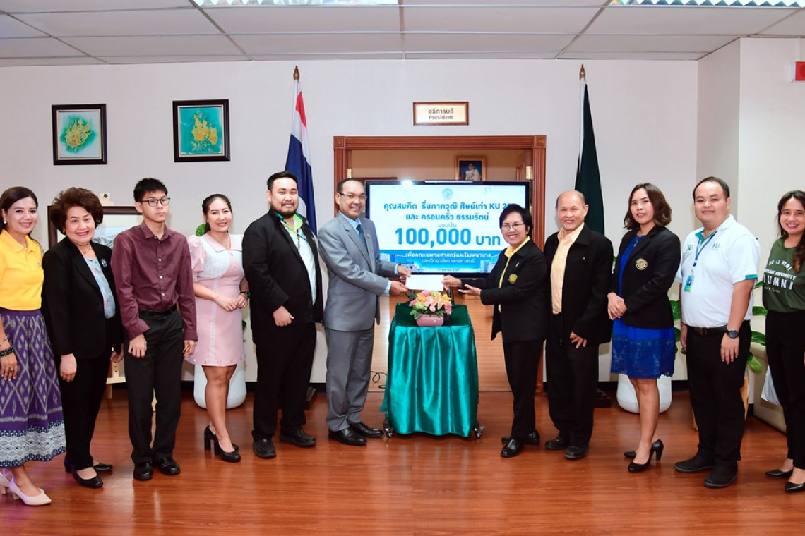 วันที่ 17 เม.ย.67 ดร.จงรัก วัชรินทร์รัตน์ อธิการบดีมหาวิทยาลัยเกษตรศาสตร์ รับมอบเงินบริจาคเพื่อสนับสนุนการสร้างคณะแพทยศาสตร์และโรงพยาบาลมหาวิทยาลัยเกษตรศาสตร์ จากคณะบุคคลและหน่วยงาน ดังนี้ คุณสมคิด รื่นภาควุฒิ ศิษย์เก่า KU 28 และ ครอบครัว“ธรรมรัตน์” มอบเงินจำนวน 100,000 บาท และ ภาควิชาภาษาต่างประเทศ คณะมนุษยศาสตร์ มหาวิทยาลัยเกษตรศาสตร์ (Department of Foreign Languages Kasetsart University ) มอบเงินจำนวน 50,000 บาท โอกาสนี้ ผศ.ดร.นุชนาถ มั่งคั่ง รองอธิการบดีฝ่ายการเงินและทรัพย์สิน ร่วมเป็นสักขีพยาน ณ อาคารสารนิเทศ 50 ปี มหาวิทยาลัยเกษตรศาสตร์