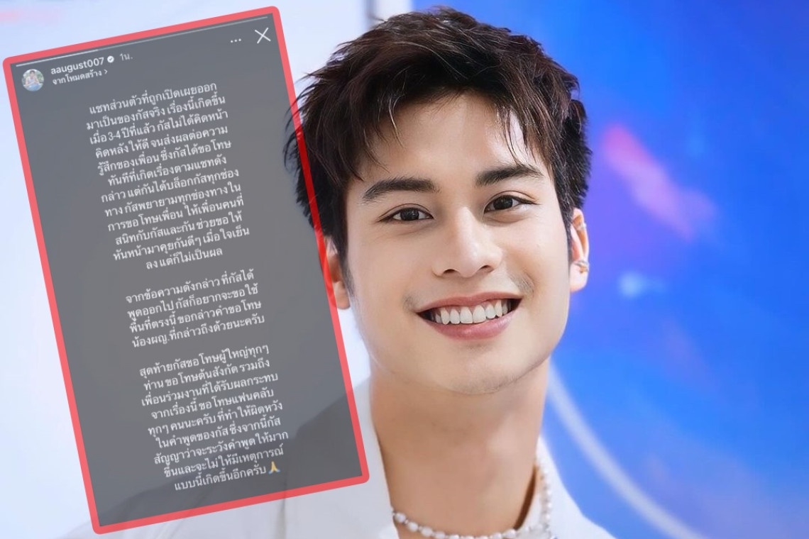 ล่าสุด "ออกัส วชิรวิชญ์" โพสต์ข้อความผ่านอินสตาแกรมสตอรี่ @aaugust007 ระบุว่า...