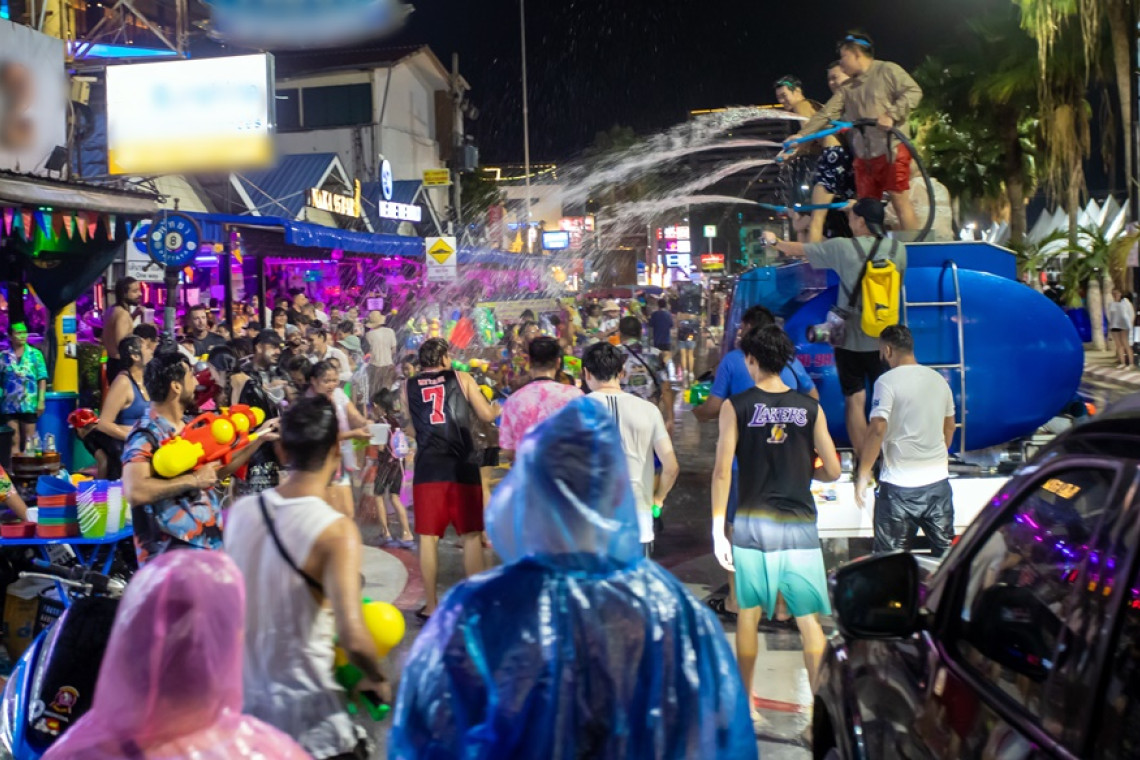 เมื่อวันที่ 17 เม.ย.67 ที่ถนนเลียบชายหาดพัทยา อ.บางละมุง จ.ชลบุรี นักท่องเที่ยวทั้งชาวไทยและชาวต่างชาติ ได้เดินออกมาเล่นน้ำ ตามบาร์เบียร์ต่างๆ เป็นจำนวนมาก ซึ่งนักท่องเที่ยวบางคนก็ขับรถน้ำคันใหญ่ออกมาฉีดนักท่องเที่ยว บางกลุ่มก็ขับขี่รถจักรยานยนต์ และนำถังน้ำขึ้นหลังรถกระบะ มาร่วมกันเล่นสงกรานต์ตามถนนชายหาดพัทยา ทำให้การจราจรบริเวณดังกล่าวเคลื่อนตัวได้อย่างช้าๆ