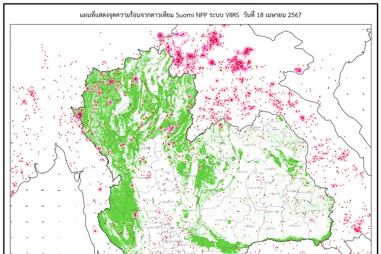 กระทรวงการอุดมศึกษา วิทยาศาสตร์ วิจัยและนวัตกรรม (อว.) โดยสำนักงานพัฒนาเทคโนโลยีอวกาศและภูมิสารสนเทศ (องค์การมหาชน) หรือ GISTDA เผยข้อมูลจากดาวเทียมซูโอมิ เอ็นพีพี (Suomi NPP) และจากดาวเทียมอีกหลายดวง เมื่อวันที่ 18 เมษายน 2567 ไทยพบจุดความร้อนทั้งประเทศ 1,262 จุด ข้อมูลจากดาวเทียมยังระบุอีกว่าจุดความร้อนที่เกิดขึ้นส่วนใหญ่พบในป่าอนุรักษ์ 413 จุด ตามด้วยป่าสงวนแห่งชาติ 395 จุด พื้นที่เกษตร 240 จุด ชุมชนและพื้นที่อื่นๆ 104 จุด เขต สปก. 99 จุด และพื้นที่ริมทางหลวง 11 จุด สำหรับจังหวัดที่พบจำนวนจุดความร้อนมากที่สุด คือ #แม่ฮ่องสอน 163 จุด ในขณะที่ข้อมูลจากดาวเทียมพบ 5 พื้นที่เสี่ยงต่อการเกิดไฟป่าซึ่งต้องเฝ้าระวังสูงสุดในสุดสัปดาห์นี้ ได้แก่ เชียงใหม่ ตาก แม่ฮ่องสอน เพชรบูรณ์ และลำปาง