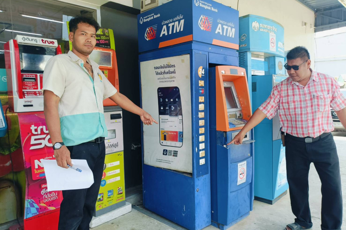 เมื่อเวลา 11.00 น. วันที่ 20 เม.ย.67 ผู้สื่อข่าวได้รับแจ้งมีเหตุคนร้ายเข้ามางัดตู้เอทีเอ็ม ธนาคารกรุงเทพ บริเวณด้านหน้าร้านสะดวกซื้อ (สาขาย่อย) หน้าตลาดเอกสิน ชุมชนหนองจอก ริมถนนสุขุมวิท ต.เชิงเนิน อ.เมือง จ.ระยอง จึงได้รุดไปตรวจสอบ เมื่อไปถึงด้านหน้าบริเวณด้านหน้าร้านสะดวกซื้อพบตู้เอทีเอ็มของธนาคารกรุงเทพและตู้เอทีเอ็มธนาคารกรุงไทยตั้งอยู่คู่กันจึงได้ตรวจสอบพบว่าตู้เอทีเอ็มธนาคารกรุงเทพด้านข้างซ้าย ขวา มีรอยงัดกระบังครอบตู้ได้รับความเสียหายและด้านหน้าหน้ากากตู้เอทีเอ็มถูกถอดน๊อตและงัดจนหักออกไป