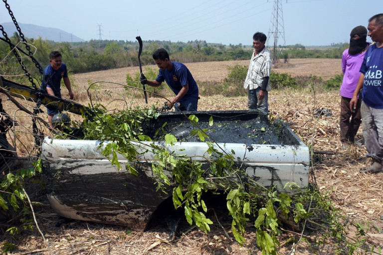 สำหรับสระน้ำดังกล่าว เป็นสระขนาดใหญ่ของเอกชน มีชาวบ้านมาหาปลา และงมหอยเป็นประจำ โดยมีชาวบ้านมางมหอยและคลำเจอตัวโครงรถ จึงแจ้งเจ้าหน้าที่ให้มาตรวจสอบ ซึ่งระหว่างการค้นหามีชาวบ้านจำนวนหนึ่งมาเฝ้าดูการค้นหา เพื่อต้องการทราบหมายเลขทะเบียนรถ ว่าคือเลขใด เพื่อนำไปเสี่ยงโชค แต่ต้องผิดหวังไปตามๆกัน เพราะการค้นพบซากชิ้นส่วนรถ แต่ไม่พบเลขทะเบียนรถแต่อย่างใด