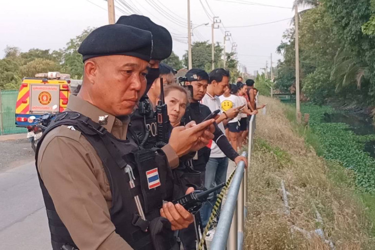 วันที่ 21 เม.ย.67 เวลา17.15 น.ที่คลองบ้านกล้วย ซอย บ่อตกปลาลุงลี ต.พิมลราช อ.บางบัวทอง จ.นนทบุรี เจ้าหน้าที่ตำรวจ สภ.บางบัวทอง รับแจ้งจากพลเมืองดีพบถุงขยะสีดำมีพิรุธสงสัยว่าจะมีส่วนเกี่ยวข้องกับชิ้นส่วนมนุษย์ที่ถูกนำไปทิ้งที่ ซอย สวิง ถนนบานกล้วย-ไทรน้อย ถูกนำมาทิ้งในคลองดังกล่าว ประสานเจ้าหน้าที่อาสากู้ภัยป่อเต็กตึ๊งลงพื้นที่ตรวจสอบ จากการตรวจสอบเบื้องต้นเจ้าหน้าที่ตำรวจพบถุงขยะสีดำสภาพเปื่อยยุ่ย ภายในถุงพบมีดทำครัวยังอยูในซองและยังไม่ได้ใช้งาน และรองเท้ากับเสื้อผ้าจำนวนหนึ่ง จึงเก็บส่งพิสูจน์หลักฐานตรวจสอบ ซึ่งช่วงเวลาดังกล่าวเป็นช่วงที่น้ำยังไม่ลด ต่อมาได้ประสานเจ้าหน้าที่อาสากู้ภัยป่อเต็กตึ๊งเกือบ10 คน ลงค้นหาภายในคลองดังกล่าว หลังจากเจ้าหน้าที่ลงค้นหาใช้เวลาประมาณ 45 นาที ก็พบวัตถุต้องสงสัย เป็นถุงขยะสีดำทิ้งอยู่ในคลองภายในตรวจพบ เป็นขวานไม้อันยาว 1 อัน และอันสั้น 1 อั้น เลื่อยวงเดือนไฟ้ฟ้า 1 อัน ร้องเท้าแตะสีครีม 1 คู่ ร้องเท้าผ้าใบสีขาว 1 คู่ และนอกจากนี้ต่อมาเจ้าหน้าที่อาสากู้ภัยฯ ขยายพื้นที่ในการค้นหา พบเลือยไม้ 1 อัน สภาพใหม่ยังไม่ขึ้นสนิม นอนจมอยู่ใต้น้ำ จึงนำขึ้นมาเพื่อให้เจ้าหน้าที่ตำรวจส่งตรวจสอบต่อไป.