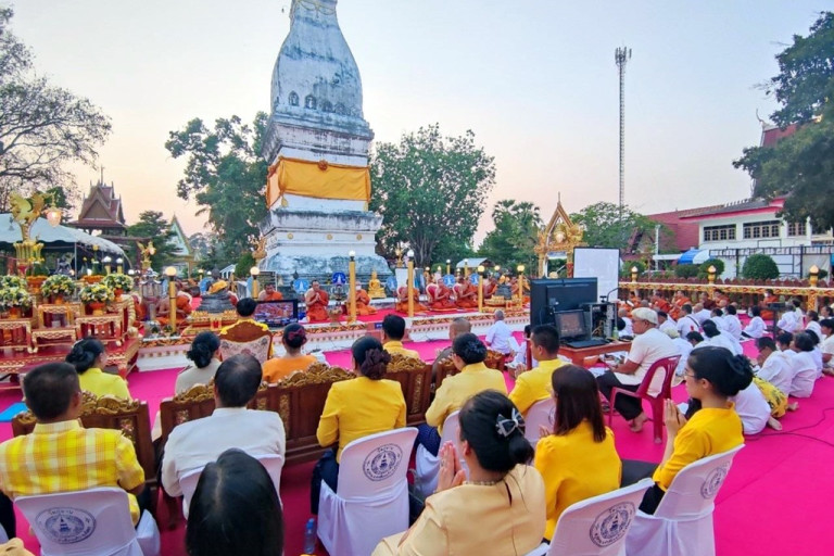 โดยมี พระเทพวงศาจารย์ เจ้าคณะจังหวัดยโสธร เป็นประธานสงฆ์ พร้อมด้วยเจ้าคณะอำเภอคำเขื่อนแก้ว เจ้าคณะอำเภอมหาชนะชัย เจ้าคณะอำเภอค้อวัง คณะสงฆ์ และสามเณรจากทั้ง 3 อำเภอ จำนวน 272 รูป พร้อมด้วย ผู้อำนวยการสำนักงานพระพุทธศาสนาจังหวัดยโสธร ผู้แทนวัฒนธรรมจังหวัดยโสธร หัวหน้าส่วนราชการประจำอำเภอ ผู้บริหารองค์กรปกครองส่วนท้องถิ่น ผู้บริหารสถานศึกษา ผอ.รพ.สต. ปลัดอำเภอ ข้าราชการ กำนัน ผู้ใหญ่บ้าน และพุทธศาสนิกชนเข้าร่วมพิธีในครั้งนี้
