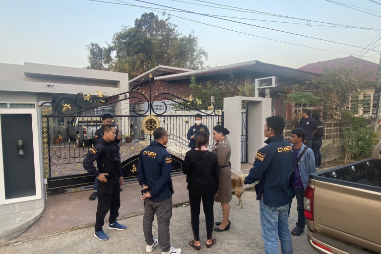 ต่อมาได้นำหมายค้นฯ ดังกล่าว เข้าทำการตรวจค้นบ้าน และพบเพียงมารดาของผู้ต้องหา จึงได้แสดงหมายค้นและทำการตรวจค้น และตรวจยึดพยานหลักฐานในบ้านพักดังกล่าว จากนั้นได้รวบรวมพยานหลักฐานสืบสวนขยายผลผู้ร่วมขบวนการ ในทุกมิติ อาทิเช่น เส้นทางการเงิน พบการเชื่อมโยงกับบุคคลอื่นอีกหลายรายโดยมีบัญชีเงินฝากเชื่อมโยงกัน จำนวน 12 บัญชี มีเงินหมุนเวียนในระยะเวลาหนึ่งเดือนประมาณ 10 ล้านบาท จึงสืบสวนขยายผลเชิงลับจนทราบว่ามีการทำเป็นขบวนการ จึงได้ร้องทุกข์กล่าวโทษต่อพนักงานสอบสวน กก.2 บก.สอท.3 เพื่อดำเนินคดีกับผู้มีส่วนเกี่ยวข้องจำนวน 3 ราย