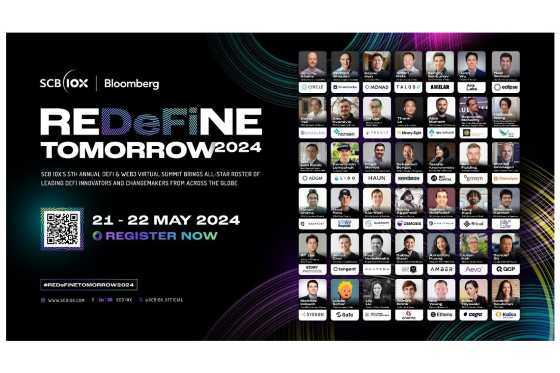 เอสซีบี เท็นเอกซ์ (SCB 10X) บริษัท Venture Capital ของกลุ่มเอสซีบี เอกซ์ (SCBX Group) เดินหน้าให้ความรู้โลกการเงินยุคใหม่และเทคโนโลยีแห่งอนาคตอย่างต่อเนื่อง ล่าสุด ร่วมมือกับ Bloomberg สำนักข่าวชั้นนำผู้ให้บริการข้อมูลธุรกิจและข้อมูลการเงินชั้นนำระดับโลก เตรียมจัดงานสัมมนาประจำปีระดับโลกในรูปแบบออนไลน์ “REDeFiNE TOMORROW 2024: DeFi & Web3 Virtual Summit” ซึ่งจัดขึ้นเป็นปีที่ 5 ให้แก่ผู้ที่สนใจทั้งในประเทศไทยและทั่วโลกสามารถร่วมเข้าฟังได้ฟรี ผ่าน Bloomberg Live และ Bizzabo ระหว่างวันที่ 21-22 พฤษภาคม 2567 ตั้งแต่เวลา 07.45-17.30 น.