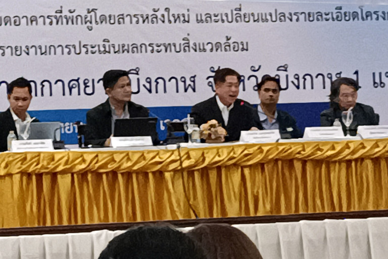 วันที่ 24 เม.ย.2567 ผู้สื่อข่าวรายงาน ว่า ที่โรงแรมเดอะวันห้องคอนเวนชั่นฮอลล์บึงกาฬ ต.บึงกาฬ อ.เมืองบึงกาฬ จ.บึงกาฬ นายจุมพฏ วรรณฉัตรสิริ ผู้ว่าราชการจังหวัดบึงกาฬ เป็นประธานในการเปิดประชุมรับฟังความคิดเห็นของประชาชน ครั้งที่ 2 โดยมีนางกันยา อนันตทัศน์ รองนายก อบจ.ร่วมรับฟังร่วมกับหัวหน้าส่วนราชการ ส่วนเกี่ยวข้อง ประชาชนผู้มีส่วนได้เสียและผู้สนใจเข้ารับฟังเป็นจำนวนมาก เนื่องจากอาจเป็นนัดประชุมครั้งสุดท้าย โดยมีวิทยากรมาแนะนำให้ความรู้ประกอบไปด้วย นายธวัช เบญจพลชัย ประธานที่ปรึกษาโครงการ นายภัทร์ เทภาสิต ผู้เชี่ยวชาญด้านสังคมและการมีส่วนร่วม นายสีหวุฒิ ชุมสาย ผู้ชำนาญการสิงแวดล้อม นายธนิสร์ สมเจตนะพันธ์ วิศวกรโครงการ และนายอภิสิทธิ์ อุบลโกมุท ผู้จัดการโครงการ