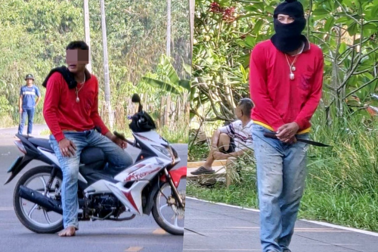 เมื่อวันที่ 23 เม.ย.67 ผู้สื่อข่าวได้ลงพื้นที่ บ้านพระบาทนาสิงห์ อ.รัตนวาปี จ.หนองคาย หลังทราบข่าวจากชาวบ้านว่า เวลาประมาณ 14.30 น. มี หนุ่มคลั่งยาบ้า ไล่ฟันชาวบ้าน ในมือถืออาวุธมีดยาวกว่า 1 ฟุต ขับขี่ จยย.ทำร้ายผู้คนในหมู่บ้านนาสิงห์ และบ้านห้วยหมากหาด ชาวบ้านต่างแตกตื่น พากันหลบเข้าบ้าน เมื่อผู้สื่อข่าวไปถึงที่เกิดเหตุพบกับเจ้าหน้าที่ตำรวจ สภ.รัตนวาปี,ฝ่ายปกครอง และชาวบ้านกว่า 30 คนพร้อมอุปกรณ์เหล็กง่ามเพื่อเตรียมเข้าควบคุมตัว ยืนอยู่ห่างหนุ่มคลั่งยาบ้า ประมาณ 150 เมตรสวมกางเกงยีนส์ขายาว เสื้อยืดแขนยาวสีแดง สวมไอ้โม่งสีดำ ยืนอยู่ข้างรถจักรยานยนต์ ฮอนด้า สีขาว ทะเบียนหนองคาย พูดจาไม่รู้เรื่อง เอะอะโวยวาย ใช้มีดฟันรถ จยย.ตนเอง ทราบชื่อต่อมานายอนันต์ (ขอสงวนนามสกุล) หรือเจ อายุ 29 ปี ชาวบ้านหมู่ที่ 2 ตำบลพระบาทนาสิงห์ อำเภอรัตนวาปี จังหวัดหนองคาย อยู่ในอาการคุ้มคลั่งตระโกนขอเงิน 1,000 บาทกับเจ้าหน้าที่ และเดินถือมีดชี้หน้าผู้คนวนไปมา เจ้าหน้าที่ได้พูดเกลี้ยกล่อม นานกว่า 1 ชั่วโมง นายเจ จึงยอมวางมีด ตำรวจ สภ.รัตนวาปี และฝ่ายปกครอง จึงได้เข้าควบคุมตัวโดยไม่มีใครได้รับบาดเจ็บและนำตัว หนุ่มคลั่งยาบ้า ส่งโรงพยาบาลรัตนวาปี เพื่อรับการรักษา