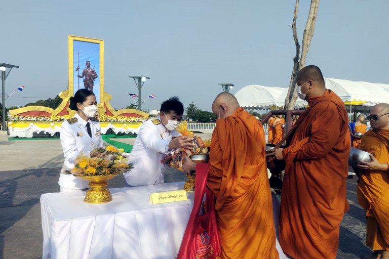 วันที่ 25 เม.ย.67 ที่บริเวณเขื่อนเรียงหิน หน้าศาลากลางจังหวัดชัยนาท นายนที มนตริวัต ผู้ว่าราชการจังหวัดชัยนาท เป็นประธานพิธีสวดพระพุทธมนต์และทำบุญตักบาตรข้าวสารอาหารแห้ง ถวายพระราชกุศล เนื่องในวันคล้ายวันสวรรคตสมเด็จพระนเรศวรมหาราช ประจำปี 2567 โดยมีนางสาวชไมพร อำไพจิตร รองผู้ว่าราชการจังหวัดชัยนาท, นายวิทยา ชพานนท์ รองผู้ว่าราชการจังหวัดชัยนาท,หัวหน้าส่วนราชการจังหวัดชัยนาท ข้าราชการ ศาล ทหาร ตำรวจ และพุทธศาสนิกชนร่วมพิธีกว่า 200 คน
