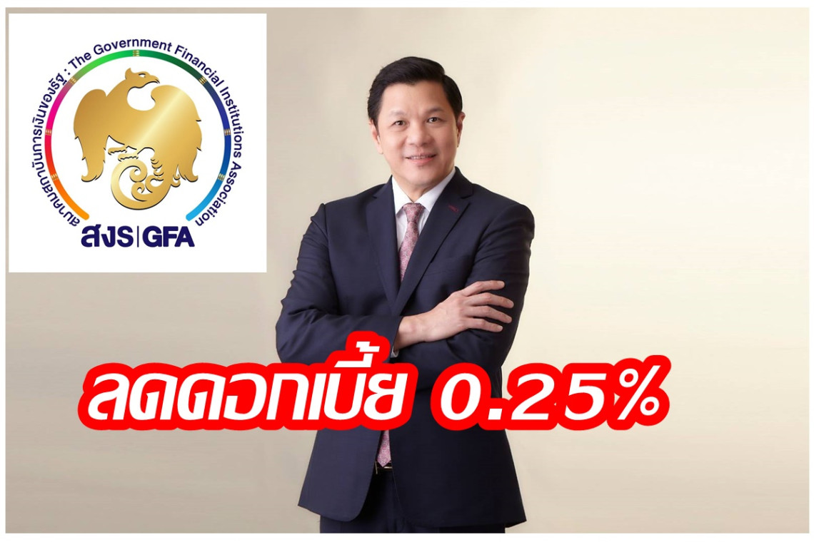 สมาคมสถาบันการเงินของรัฐ ขานรับนโยบายรัฐบาล ลดดอกเบี้ยลง 0.25% มีผล 1 พ.ค.67 ช่วยเหลือลูกค้ารายย่อยและกลุ่มเปราะบาง