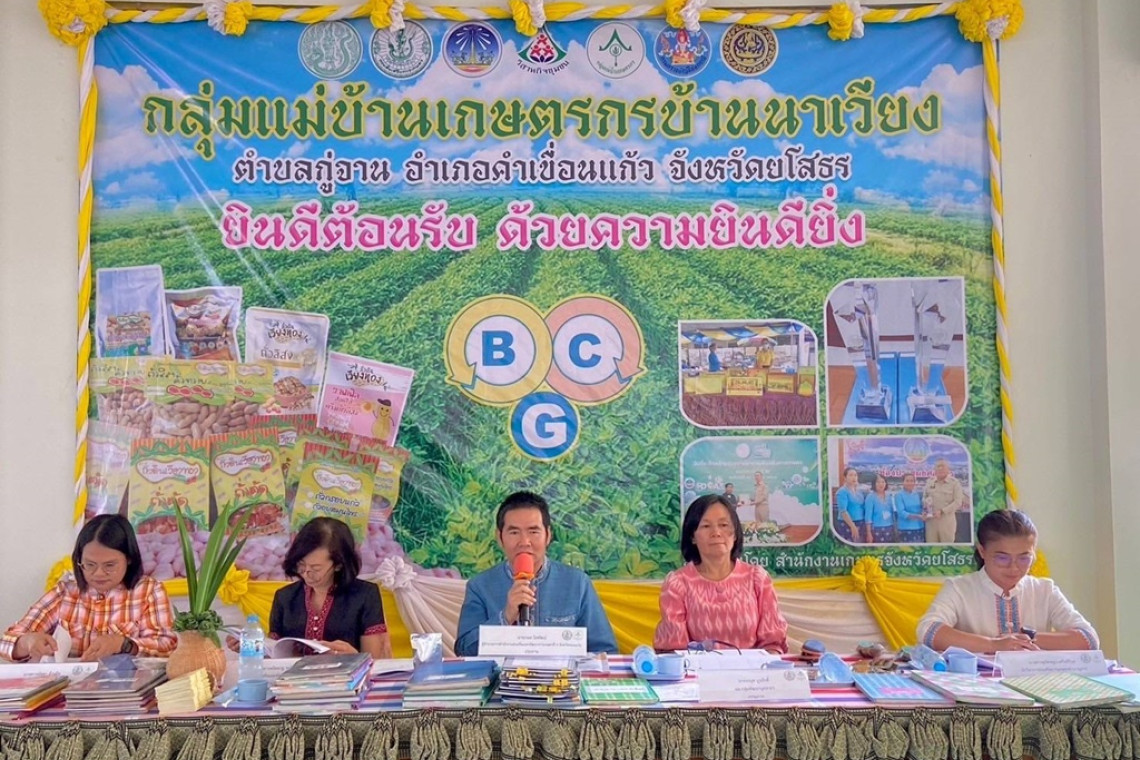 เมื่อวันที่ 25 เม.ย.67 นายนพดล ผุดผ่อง เกษตรจังหวัดยโสธร พร้อมด้วยนายสุชาติ ปกป้อง เกษตรอำเภอคำเขื่อนแก้ว และเกษตรอำเภอทั้ง 9 อำเภอ พร้อมด้วยเจ้าหน้าที่ ร่วมต้อนรับคณะกรรมการคัดเลือกสถาบันเกษตรกรดีเด่น สาขาแม่บ้านเกษตรกร จากสำนักงานส่งเสริมและพัฒนาการเกษตรที่ 4 จังหวัดขอนแก่น ในการประกวดกิจกรรมกลุ่มแม่บ้านเกษตรกรดีเด่น ระดับเขต ประจำปี 2567 เพื่อยกย่องประกาศเกียรติคุณและเผยแพร่ผลงานให้สาธารณชนทั่วไปได้รู้จักและยึดถือเป็นแบบอย่างแนวทางการปฏิบัติงาน และในการนี้ พ.จ.อ.อนุสิทธิ์ บัวหุ่ง นายอำเภอคำเขื่อนแก้ว ได้กล่าวต้อนรับคณะกรรมการฯ ที่ทำการกลุ่มแม่บ้านเกษตรกรบ้านนาเวียง ตำบลกู่จาน อำเภอคำเขื่อนแก้ว จังหวัดยโสธร