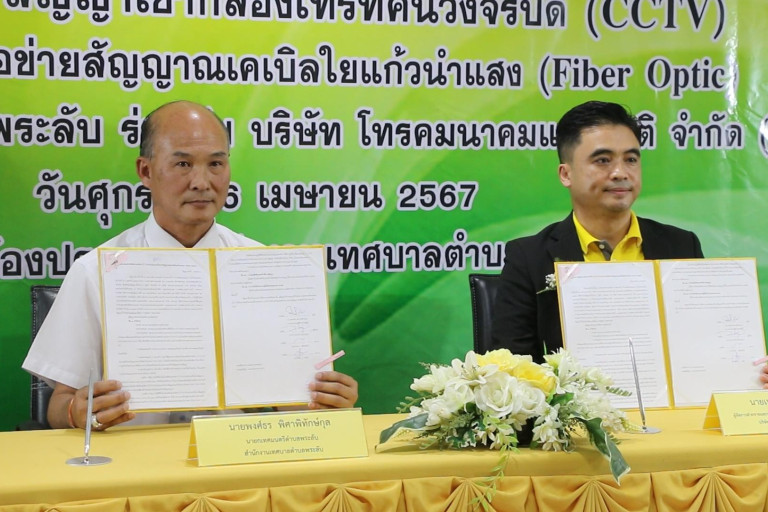 เมื่อเวลา 14.30 น.วันที่ 26 เม.ย.2567 ที่ห้องประชุมเทศบาลตำบลพระลับ อ.เมือง จ.ขอนแก่น นายพงศ์ธร พิศาพิทักษ์กุล นายกเทศมนตรีตำบลพระลับ พร้อมด้วย นายเปรมวิทย์ เปรมบัญชา ผู้จัดการฝ่ายขายและปฏิบัติการลูกค้าภาคตะวันออกเฉียงเหนือตอนบนที่ 1 บมจ.โทรคมนาคมแห่งชาติ หรือ NTร่วม ลงนามในสัญญาเช่าระบบกล้องโทรทัศน์วงจรปิด "CCTV System" เพื่อรักษาความเป็นรักษาความปลอดภัย และดูแล การจราจร รวมทั้งการส่งเสริมสนับสนุนหน่วยงานต่าง ๆ ในการรักษาความปลอดภัยในชีวิตและทรัพย์สินให้กับประชาชนในพื้นที่ทั้ง 19 หมู่บ้าน