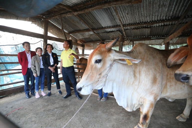 นอกจากนี้ ภายหลังพบปะกับเกษตรกรผู้เลี้ยงโคเนื้อ นายสมศักดิ์ พร้อมคณะ ได้เดินทางลงพื้นที่บ้านของครอบครัวที่เลี้ยงวัวนำร่องประสบความสำเร็จ โดยเกษตรกร อธิบายว่า ตนได้รับเงินสนับสนุนมา 30,000 บาท เพื่อซื้อวัว 2 ตัว ผ่านมา 4 ปี 5 เดือน ตนมีวัวรวมแล้ว 11 ตัว ซึ่งในจำนวนนี้ มีตัวผู้อยู่จำนวน 3 ตัว โดยสามารถขาย แล้วนำเงินไปซื้อตัวเมีย เพื่อขยายพันธุ์ต่อได้อีก ทำให้ปัจจุบัน ตนไม่มีหนี้สิน และมีเงินใช้เพียงพอ จึงขอขอบคุณที่ได้ผลักดันโครงการที่เป็นประโยชน์กับเกษตรกร