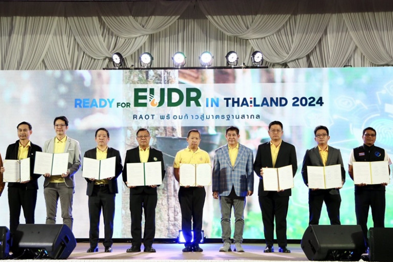 นอกจากนี้ ภายในงานยังมีการร่วมลงนามแสดงเจตจำนงความร่วมมือ (MOU) การขับเคลื่อนสินค้ายางพาราตามกฎระเบียบว่าด้วยสินค้าที่ปลอดจากการตัดไม้ทำลายป่า (EUDR) ของประเทศไทย ระหว่างภาครัฐ สถาบันเกษตรกรชาวสวนยาง และผู้ประกอบกิจการยาง แสดงให้เห็นว่าทุกภาคส่วนให้ความสำคัญและเดินหน้าขับเคลื่อนโครงการ Ready for EUDR in Thailand : RAOT พร้อมก้าวสู่มาตรฐานสากล เพื่อให้เกิดการพัฒนาการจัดการระบบยางอย่างยั่งยืน เพิ่มมูลค่าและพัฒนาธุรกิจผลผลิตยาง ตลอดจนอุตสาหกรรมด้านยางพาราอย่างครบวงจร เป็นการปูรากฐานไทยก้าวสู่ความเป็นผู้นำด้านการผลิตและส่งออกยางพาราที่มีคุณภาพในระยะยาว