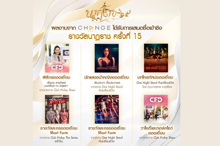 ซึ่งงานนี้ CHANGE2561 ผู้ผลิตคอนเทนต์อิสระ โดยมุ่งเน้นเรื่องของความแปลกใหม่ที่มีคุณภาพและการควบคุมรายละเอียดทุกขั้นตอนของการผลิต พร้อมมุ่งหน้าขยายขอบเขตการสร้างสรรค์คอนเทนต์ที่หลากหลาย เพื่อผลักดันอุตสาหกรรมบันเทิงไทยมาตรฐานใหม่สู่สากล น่าจับตามองเลยทีเดียว เมื่อได้เข้าร่วมลุ้นเข้าชิง 6 รางวัล จากเวทีอันทรงเกียรติ “นาฎราช” ครั้งที่ 15