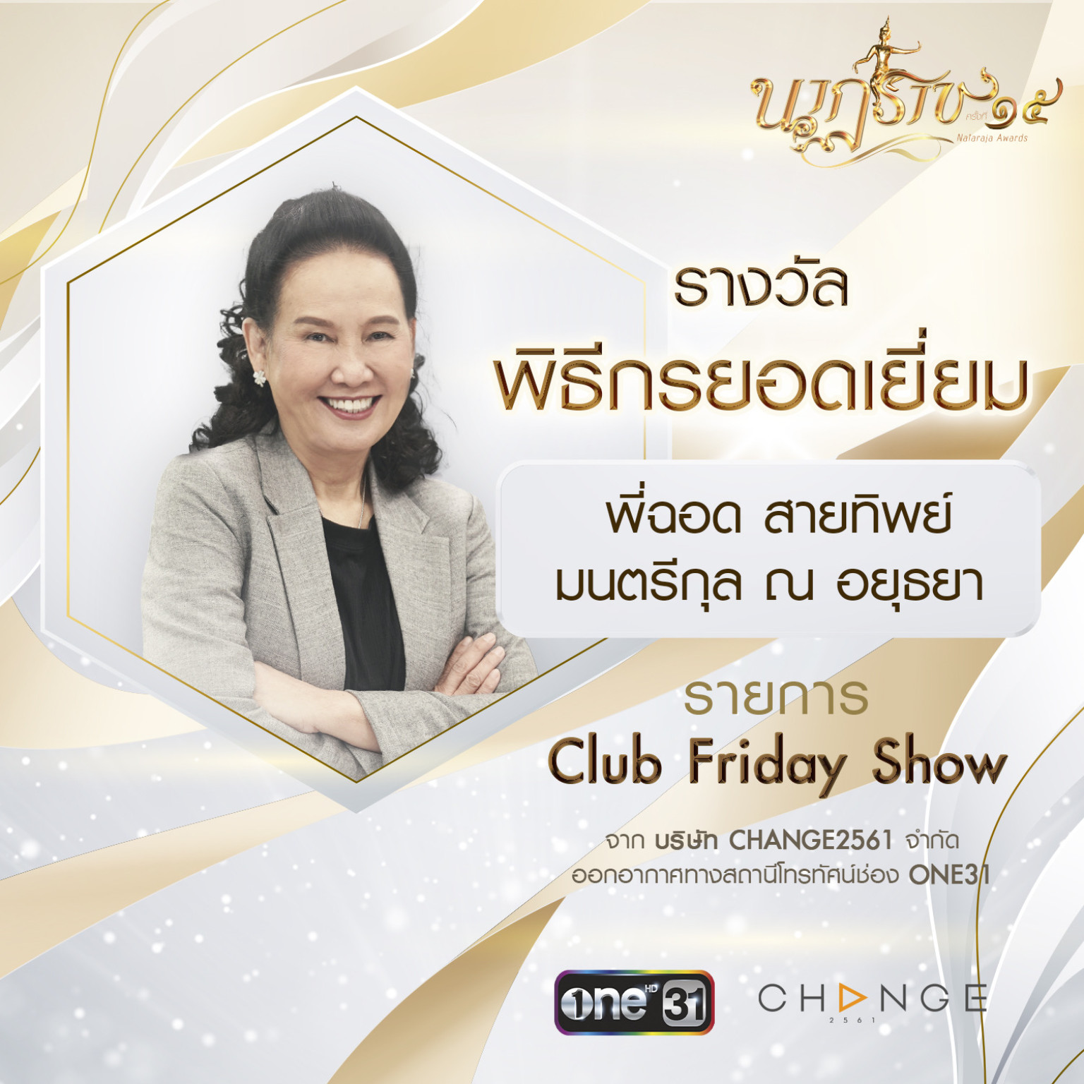 - พี่ฉอด สายทิพย์ มนตรีกุล ณ อยุธยา จากรายการ #ClubFridayShow ทางช่องวัน31 เข้าชิง สาขา รางวัลพิธีกรยอดเยี่ยม