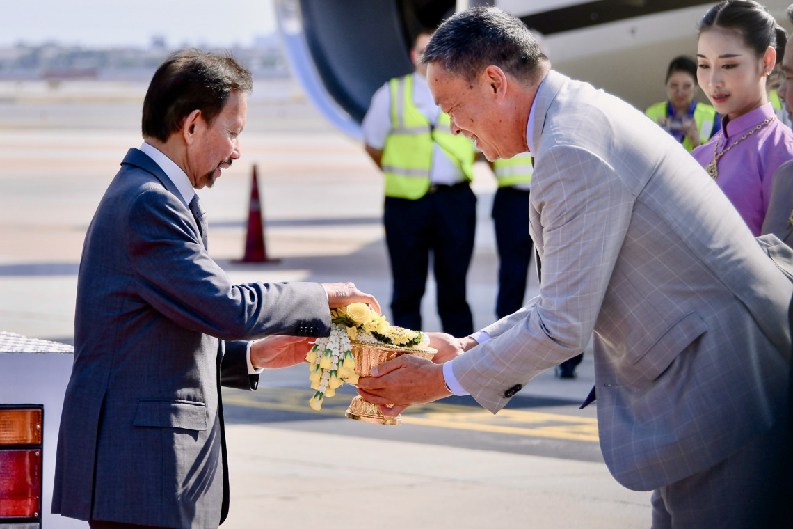 วันที่ 28 เมษายน 2567 เมื่อเวลา 15.45 น. ที่ท่าอากาศยานสุวรรณภูมิ สมเด็จพระราชาธิบดีแห่งบรูไนดารุสซาลาม เสด็จฯ ถึงท่าอากาศยานสุวรรณภูมิ โดยเครื่องบินพระที่นั่ง โดยมีนายเศรษฐา ทวีสิน นายกรัฐมนตรี และนายพีระพันธ์ุ สาลีรัฐวิภาค รองนายกรัฐมนตรีและรมว.พลังงาน รอรับเสด็จ ที่ท่าอากาศยานสุวรรณภูมิ