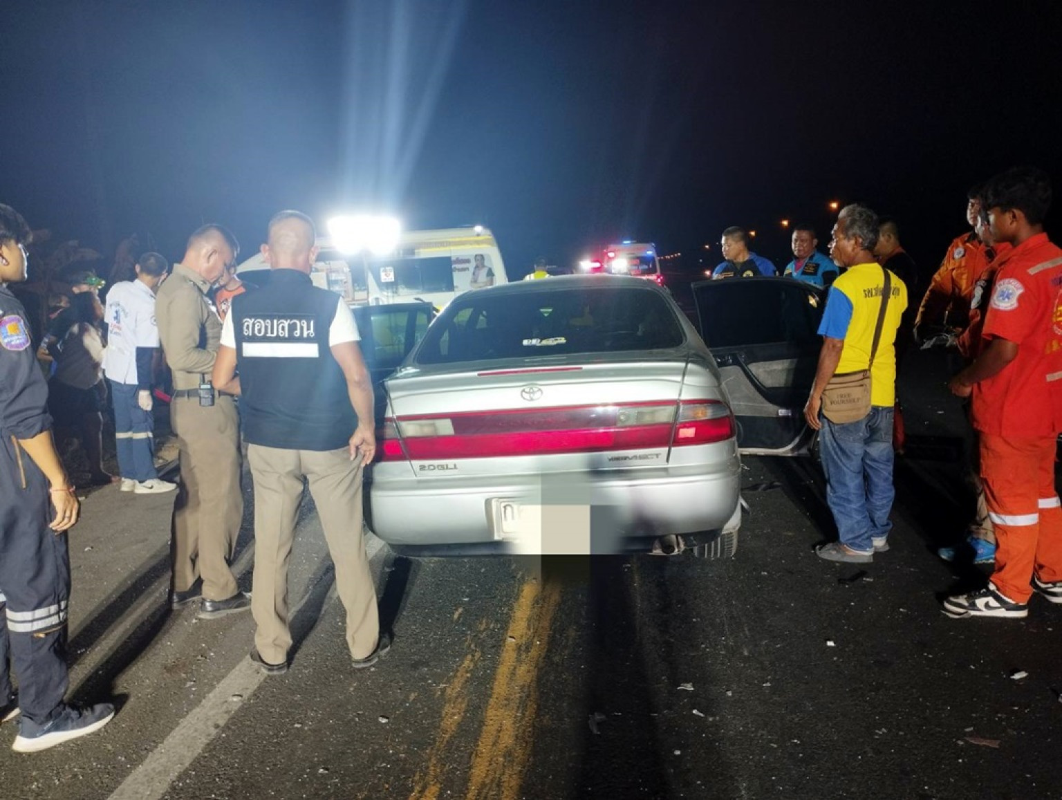 เมื่อวันที่ 29 เมย.67 เวลาประมาณ 20.00 น.ที่ถนนแจ้งสนิทบริเวณบ้านคำบอน ตำบลดู่ทุ่ง อำเภอเมืองยโสธร จังหวัดยโสธร ศูนย์วิทยุ สภ.เมืองยโสธรได้รับแจ้งเหตุมีรถชนกันบริเวณดังกล่าว พ.ต.ท.พูลศักดิ์ เศิกศิริ ร้อยเวร สภ.เมืองยโสธรพร้อมหน่วยกู้ชีพกู้ภัยลงพื้นที่ตรวจสอบที่เกิดเหตุเมื่อไปถึงพบรถเก๋งโตโยต้าสีบรอนด์ ทะเบียนยโสธร สภาพด้านหน้าพังยับเยิน