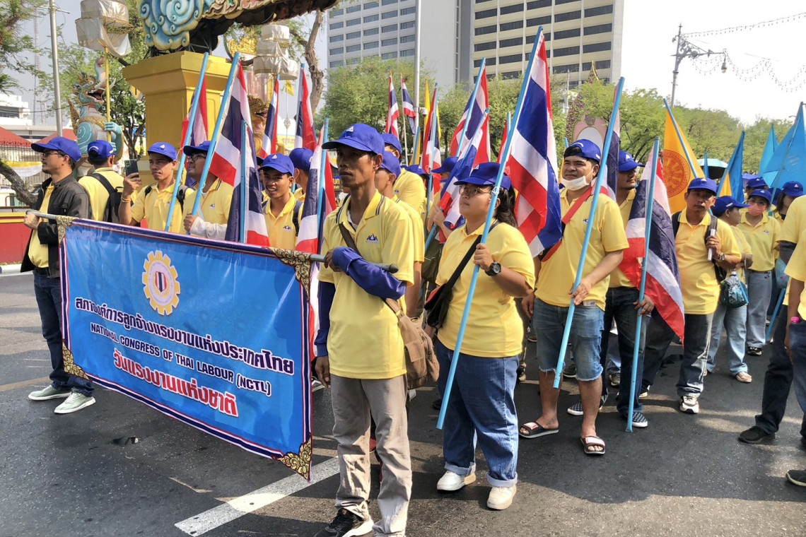 ส่วนกลุ่มสมาพันธ์สมาฉันท์แรงงานไทย, สมาพันธรัฐวิสาหกิจสัมพันธ์ (สรส.), เครือข่ายขับเคลื่อนชุมชนสมานฉันท์แรงงานข้ามชาติ, กลุ่มสหภาพแรงงาน อ้อมน้อย อ้อมใหญ่, สหภาพแรงงงานวิสาหกิจการกีฬาแห่งประเทศไทย, พนักงานกระทรวงสาธารณสุขและลูกจ้าง สังกัด สธ., กลุ่มสหภาพแรงงานภาคตะวันออก, สหภาพแรงงานรัฐวิสาหกิจการไฟฟ้าส่วนภูมิภาค เคลื่อนขบวนเรียกร้องกฎหมายแรงงาน ที่ทำเนียบรัฐบาล