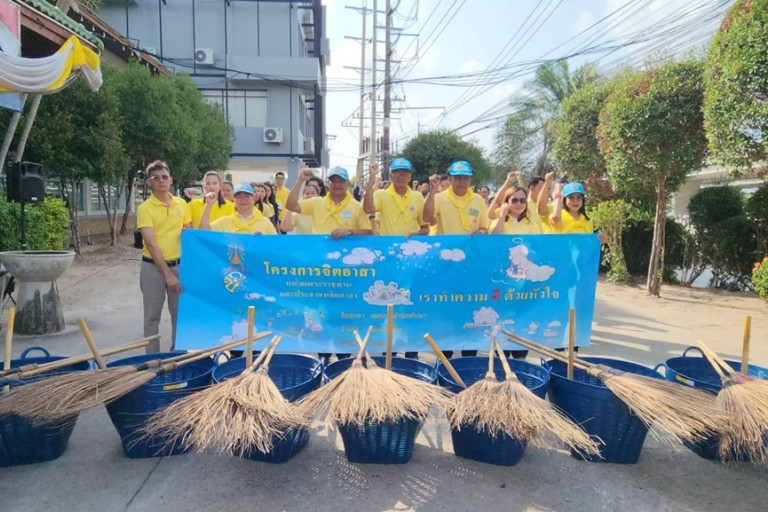วันที่ 1 พ.ค.67 ที่บริเวณหน้าที่ทำการสำนักงานเทศบาลตำบลทับมา อ.เมือง จ.ระยอง นายชูชาติ คงทน รองนายกเทศมนตรีตำบลทับมา เป็นประธานเปิดโครงการร่วมใจรักษ์ พิทักษ์ความสะอาด เฉลิมพระเกียรติพระบาทสมเด็จพระเจ้าอยู่หัว เนื่องในโอกาสมหามงคลเฉลิมพระชนมพรรษา 6 รอบ 28 พรรษา และกิจกรรม 'จิตอาสา เราทำความดีด้วยหัวใจ' นำผู้บริหาร หัวหน้าส่วนราชการ เจ้าหน้าที่ พนักงานเทศบาลตำบลทับมา ร่วมกันทำความสะอาด เก็บกวาดขยะ ปรับปรุงภูมิทัศน์อาคารสถานที่ที่ทำงานให้ใช้ประโยชน์ได้อย่างมีประสิทธิภาพให้มีทัศนียภาพสวยงาม และเป็นระเบียบเรียบร้อย