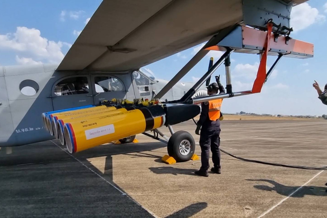 กองทัพอากาศทำงานกันเป็นทีม สนับสนุนหน่วยฝนหลวง จัดเครื่องบินพร้อมชุดระเบิดเมฆบนอากาศ เพื่อเร่งทำฝนหลวงลดความร้อนและความแห้งแล้งในเขต อุบลราชธานี และ จังหวัดต่างๆ ในเขตภาคอีสาน