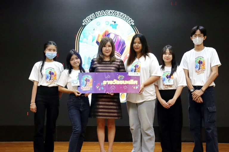 สำหรับผู้ชนะเลิศการประชันไอเดียในโครงการ DPU Hackathon ภายใต้แนวคิด “Carbon Hero” ปีนี้ คือ ทีม Day Dreamers (Shin Shop) ซึ่งได้เสนอแนวคิดในการนำเสื้อผ้าเก่าหรือเศษผ้ามาทำให้เกิดเป็นสินค้าใหม่ ลดการปล่อยก๊าซตคาร์บอนไดออกไซด์ (CO2) สู่ชั้นบรรยากาศ