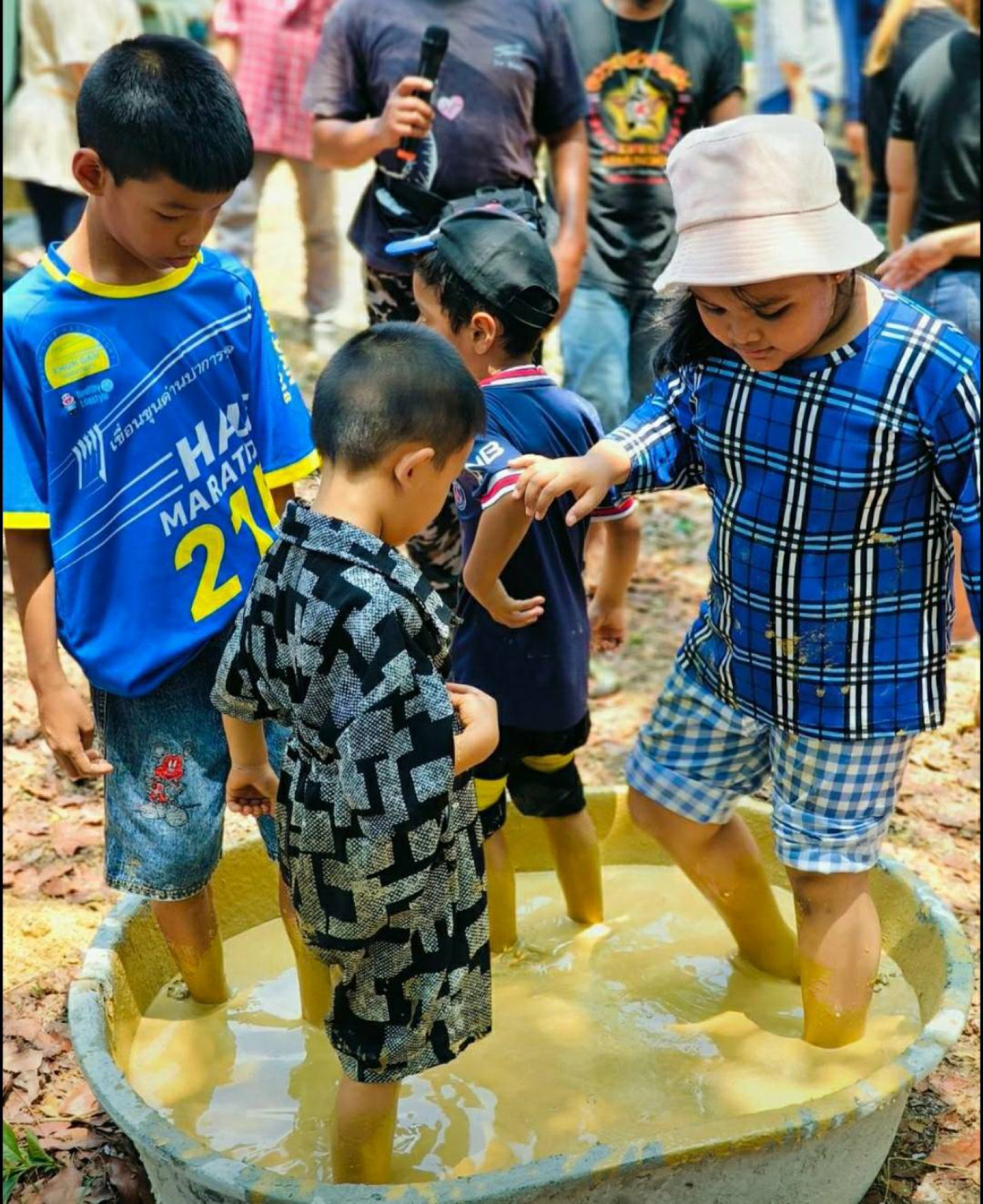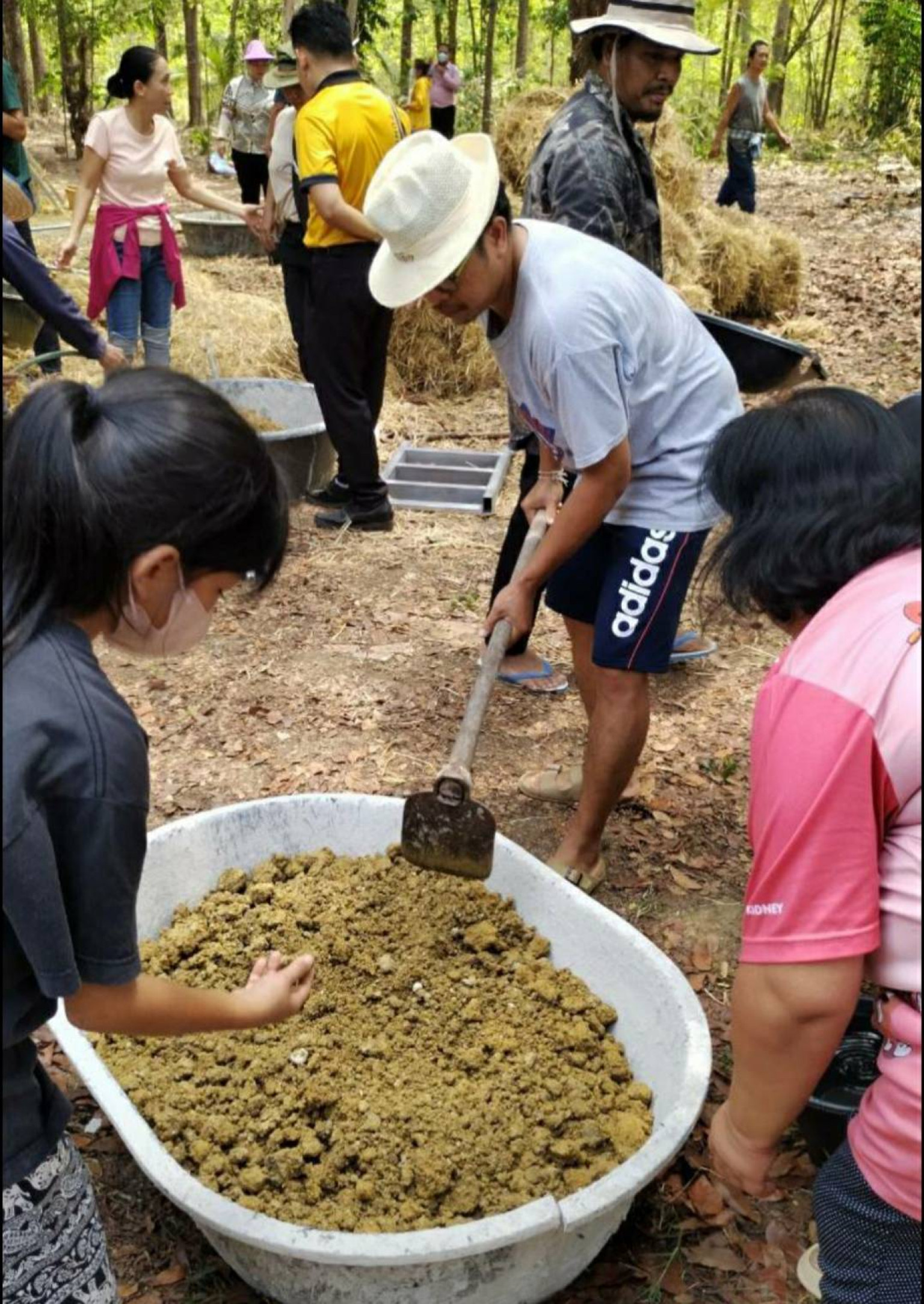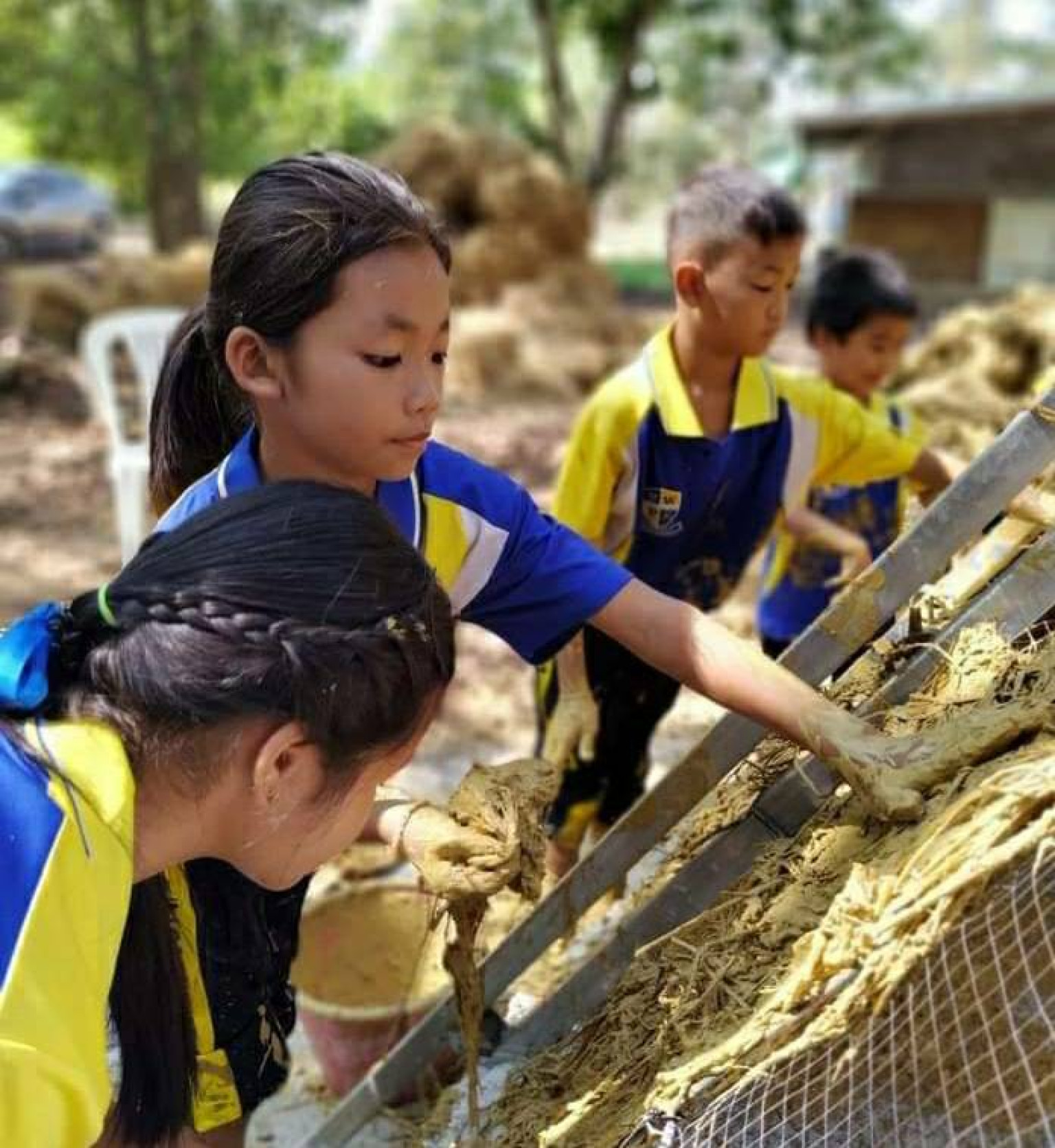 จากนั้นจึงมีการแบ่งกลุ่มเพื่อทดลองย่ำดินและทำก้อนดิน ช่วงบ่ายผู้เข้ารับการอบรมทั้งเด็กนักเรียนและประชาชนที่เข้ารับการอบรมจำนวน 117 คนร่วมกันสร้างกระโจมดินสู้ร้อนขนาดมาตรฐาน แห่งแรกในประเทศไทย ซึ่งเป็นงานทดลองขององค์กรเครือข่ายบ้านดิน (บ้านสายรุ้ง) โดยใช้เทคนิคบ้านดินแบบฉาบโครง ผนัง 2 ชั้น มีช่องว่างระหว่างผนังเผื่อถ่ายเทความร้อน จึงทำให้ผนังบ้านดินเย็นอยู่เสมอ (สามารถลดความร้อนได้ เกิน10 องศาเซลเซียส) จากนั้นเวลา17.00น.สรุปโครงการอบรมและความรู้ที่ใด้รับจากวิทยากร
