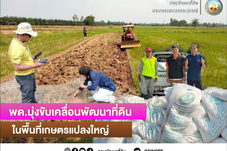กรมพัฒนาที่ดิน มุ่งมั่นขับเคลื่อนนโยบายกระทรวงเกษตรและสหกรณ์สร้างรายได้ภาคการเกษตร โดยใช้หลักการ “ตลาดนำ นวัตกรรมเสริม เพิ่มรายได้” ช่วยลดต้นทุน เพิ่มผลผลิต สร้างมูลค่าเพิ่มให้กับสินค้าเกษตร ด้วยการส่งเสริมการบริหารจัดการแบบแปลงใหญ่ด้วยเกษตรสมัยใหม่/เกษตรแม่นยำ (Precision Farming) สนับสนุนการปลูกพืชให้เหมาะสมกับพื้นที่ พร้อมทั้งส่งเสริมการปรับปรุงบำรุงดินให้มีความอุดมสมบูรณ์เหมาะสมในการปลูกพืช