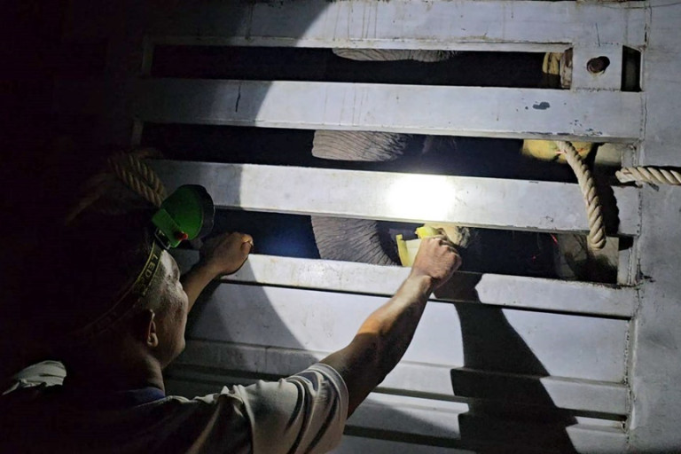 โดยในที่สุดเมื่อคืนที่ผ่านกำลังเจ้าหน้าที่ได้ปฏิบัติการเคลื่อนย้ายช้างป่า “พลายไข่นุ้ย”แล้วหลังจากช่วงเย็นพระอาทิตย์เริ่มตกดิน ได้ถูกนำตัวขึ้นรถบรรทุก 10 ล้อโดยวิธีการใช้ช้างพี่เลี้ยงคือพลายเข็มทอง ช้างพลายของควาญอ็อดเป็นพี่เลี้ยงควบคุมนำตัวพลายไข่นุ้ยขึ้นไปอยู่บนรถบรรทุก โดยมีพลายเข็มทอง ยืนเป็นพี่เลี้ยงประกบรอการเดินทางตามฤกษ์ของวิชาควาญช้างในการควบคุมช้างป่าคือเวลาตี 1 หรือ 01.00 น.ของวันนี้ และเป็นช่วงที่อากาศคลายความร้อนสะดวกกับการเดินทางของช้าง โดยก่อนออกเดินทางมีภาพประทับใจที่บีบหัวใจเจ้าหน้าที่หลายคน ทีมพี่เลี้ยงพลายไข่นุ้ยซึ่งเป็นเจ้าหน้าที่อุทยาน คอยไปหาอาหารบรรทุกมาให้พลายไข่นุ้ยตลอด 8 เดือนกลายเป็นคนสนิทของพลายไข่นุ้ยที่ได้รับความไว้วางใจได้ยื่นงวงมาให้พี่เลี้ยงทั้งหมดที่เรียกพลายไข่นุ้ยว่า “บ่าว”(หมายถึงเด็กหนุ่ม) ได้จับงวงทุกคนคล้ายกับรู้ว่าจะออกเดินทาง เมื่อพี่เลี้ยงบอกให้เดินทางไปอยู่ในที่สบายกว่านี้พลายไข่นุ้ยกลับมีน้ำตาไหลออกมาสิ้นวิสัยช้างป่าอย่างสิ้นเชิง ยิ่งทำให้พี่เลี้ยงที่มาส่งน้ำตาซึมไปด้วยและบอกเพียงว่าเป็นความผูกพันธ์ที่อยู่ด้วยกันมา และบางคนยอมไม่มาส่งเนื่องจากความรักที่อยู่ด้วยกันมาถึง 8 เดือน อต่อย่างไรก็ตามต่างเข้าใจดีว่าพลายไข่นุ้ยจะไปถูกปล่อยในพื้นที่มีความเป็นอยู่สบายกว่าที่นี่