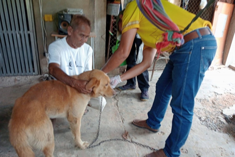 นายสุทิน กล่าวอีกว่า หลังจากนั้น ได้แจ้งเตือนผู้นำชุมชน กำนัน ผู้ใหญ่บ้าน และองค์กรปกครองส่วนท้องถิ่น ทำการสำรวจประชากรสัตว์เลี้ยงพร้อมให้คำแนะนำ และฉีดวัคซีนป้องกันอย่างต่อเนื่อง ทำให้ปัจจุบันสามารถป้องกันการเกิดโรคพิษสุนัขบ้าระบาดได้ผล อย่างไรก็ตาม ก็ยังจะดำเนินการป้องกันต่อไปโดยไม่ประมาท เพื่อความปลอดภัยของสัตว์เลี้ยงและพี่น้องประชาชนทุกฤดูกาล ทั้งนี้ ในช่วงนี้ที่สภาพอากาศร้อนจัด อุณหภูมิ 37-42 องศา ถือเป็นปัจจัยหนึ่งที่เสี่ยงต่อการเกิดโรคพิษสุนัขบ้าระบาด ดังนั้น หากพบสัตว์เลี้ยงมีอาการผิดปกติ เช่น กระวนกระวาย กลัวน้ำ ก้าวร้าว คลั่ง กัดโดยไม่ถูกยุแหย่ เสียงเห่าเปลี่ยน กัดสิ่งของแปลกปลอม สำรอก กรามห้อย ลิ้นที่ห้อยออกมาแห้ง ขาแข็งเมื่อเดินหรือวิ่ง ซึ่งเป็นอาการเสี่ยงได้รับเชื้อพิษสุนัขบ้า ให้รีบแจ้งหน้าที่ทันที