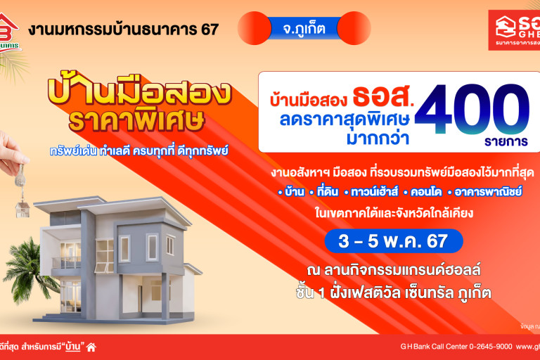 ธนาคารอาคารสงเคราะห์ (ธอส.) พร้อมสนับสนุนคนไทยให้มีที่อยู่อาศัยเป็นของตนเองเพิ่มขึ้น ด้วยการจัดงาน มหกรรมบ้านธนาคาร 67 จังหวัดภูเก็ต ระหว่างวันที่ 3-5 พฤษภาคม 2567 ณ ลานกิจกรรมแกรนด์ฮอลล์ ชั้น 1 ฝั่งเฟสติวัล เซ็นทรัล ภูเก็ต โดยภายในงาน ธอส. นำบ้านมือสองคุณภาพดี ทำเลเด่น และราคาคุ้มค่า ที่ตั้งอยู่ใน จ.ภูเก็ตและพื้นที่ใกล้เคียง มาจำหน่าย 495 รายการ ทั้งประเภทบ้านเดี่ยว บ้านแฝด ทาวน์เฮ้าส์ ห้องชุด (คอนโดมิเนียม) และอาคารพาณิชย์ พร้อมส่วนลดสูงสุด 50% จากราคาประเมิน โดยทรัพย์ที่น่าสนใจ ได้แก่ ทรัพย์ประเภทบ้านแฝด 2 ชั้น ขนาดเนื้อที่ 30.9 ตร.ว. ในโครงการหมู่บ้านลินลี่ วัลเลย์ อ.เมืองกระบี่ จ.กระบี่ มีราคาจำหน่ายอยู่ที่ 1.505 ล้านบาท เนื่องจากเป็นทรัพย์ที่ติดถนนหลัก เดินทางสะดวก และเหมาะแก่การอยู่อาศัย