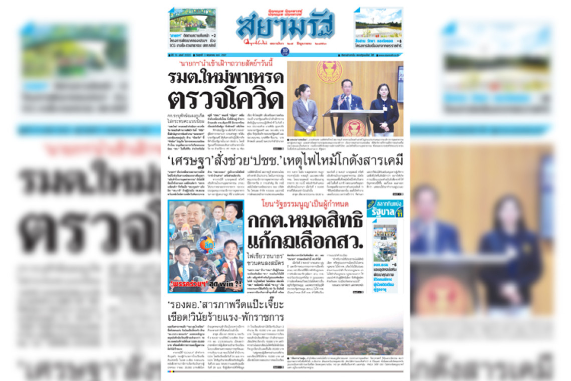 หน้า 1 หนังสือพิมพ์สยามรัฐรายวัน ฉบับวันศุกร์ที่ 3 พฤษภาคม 2567