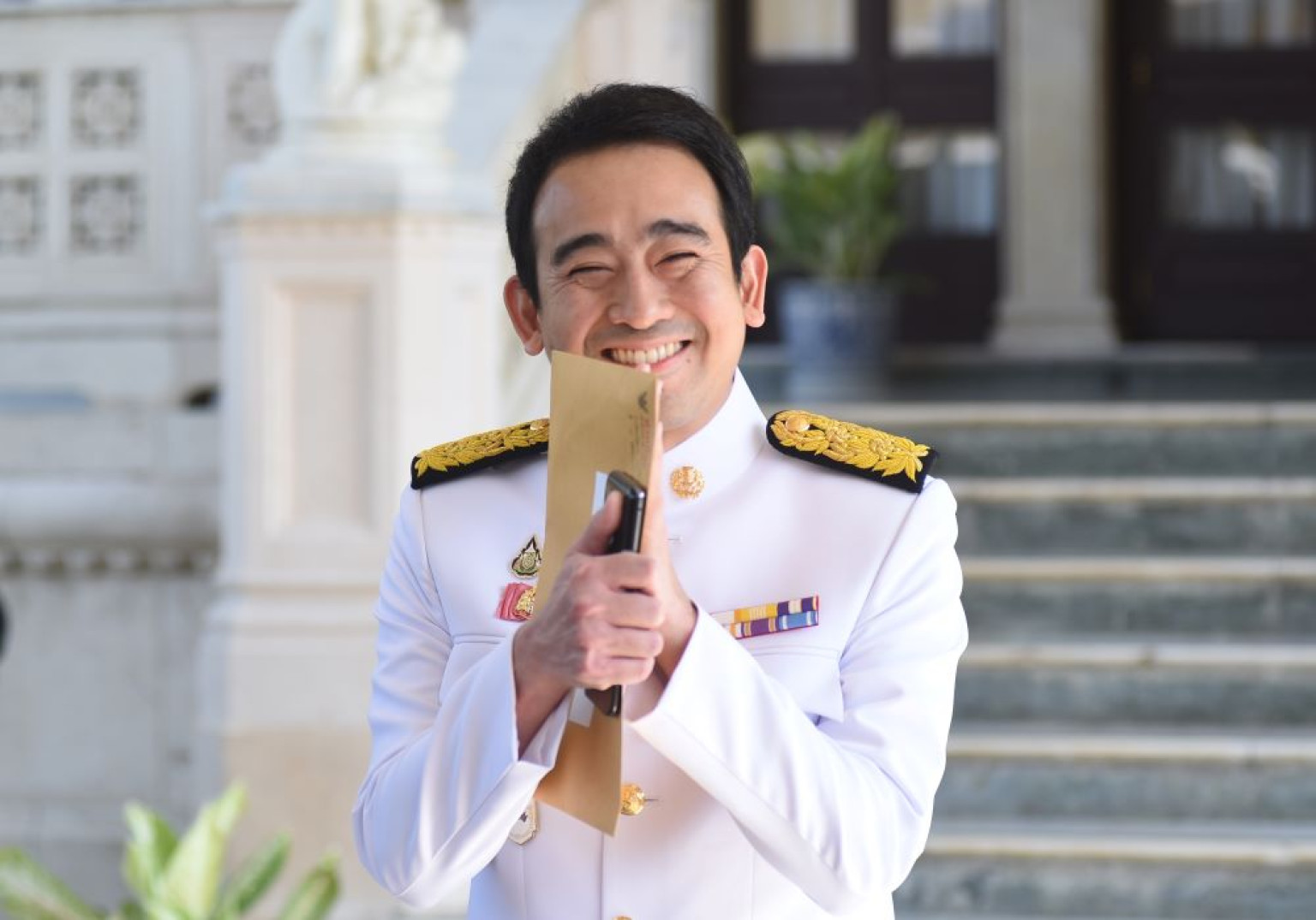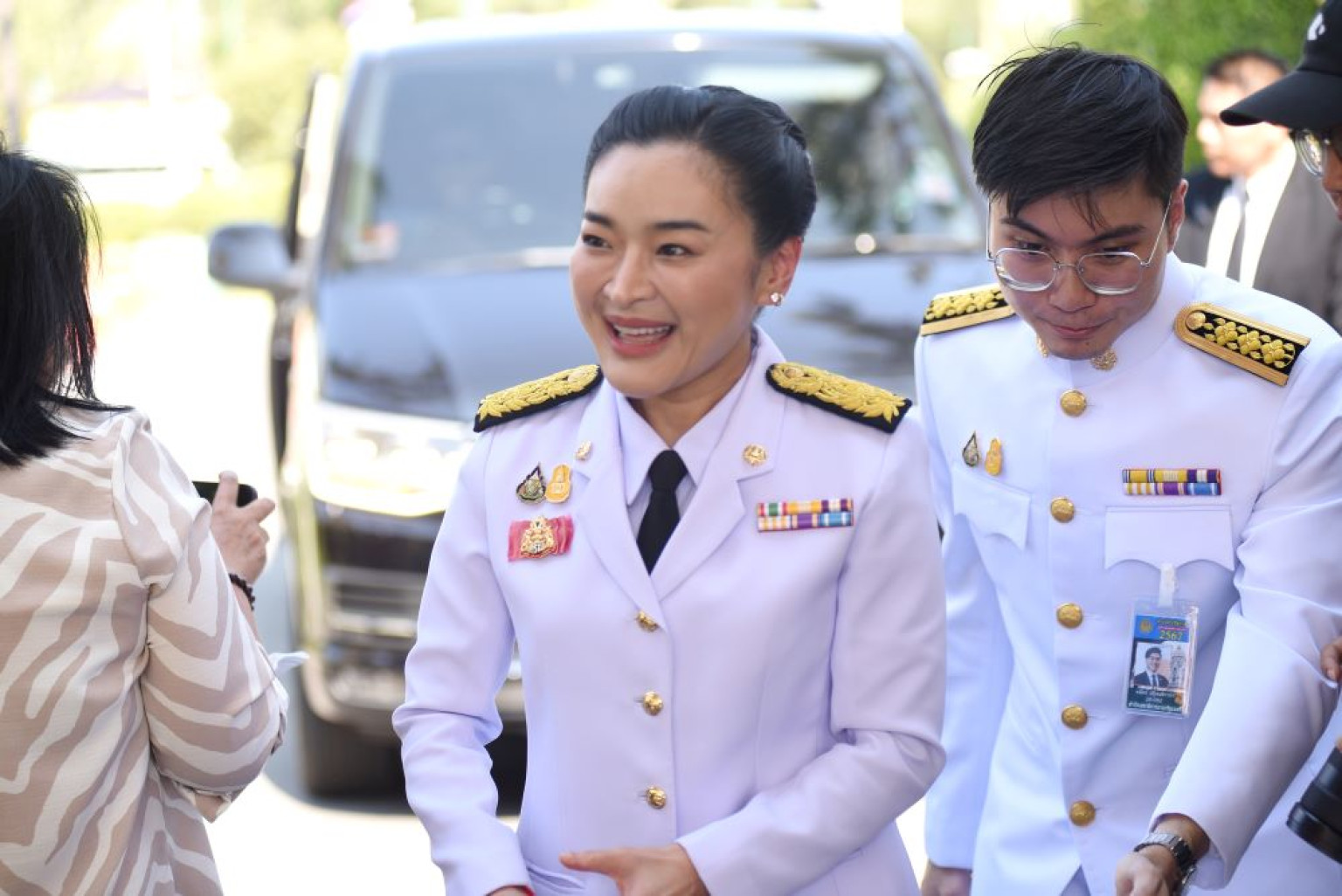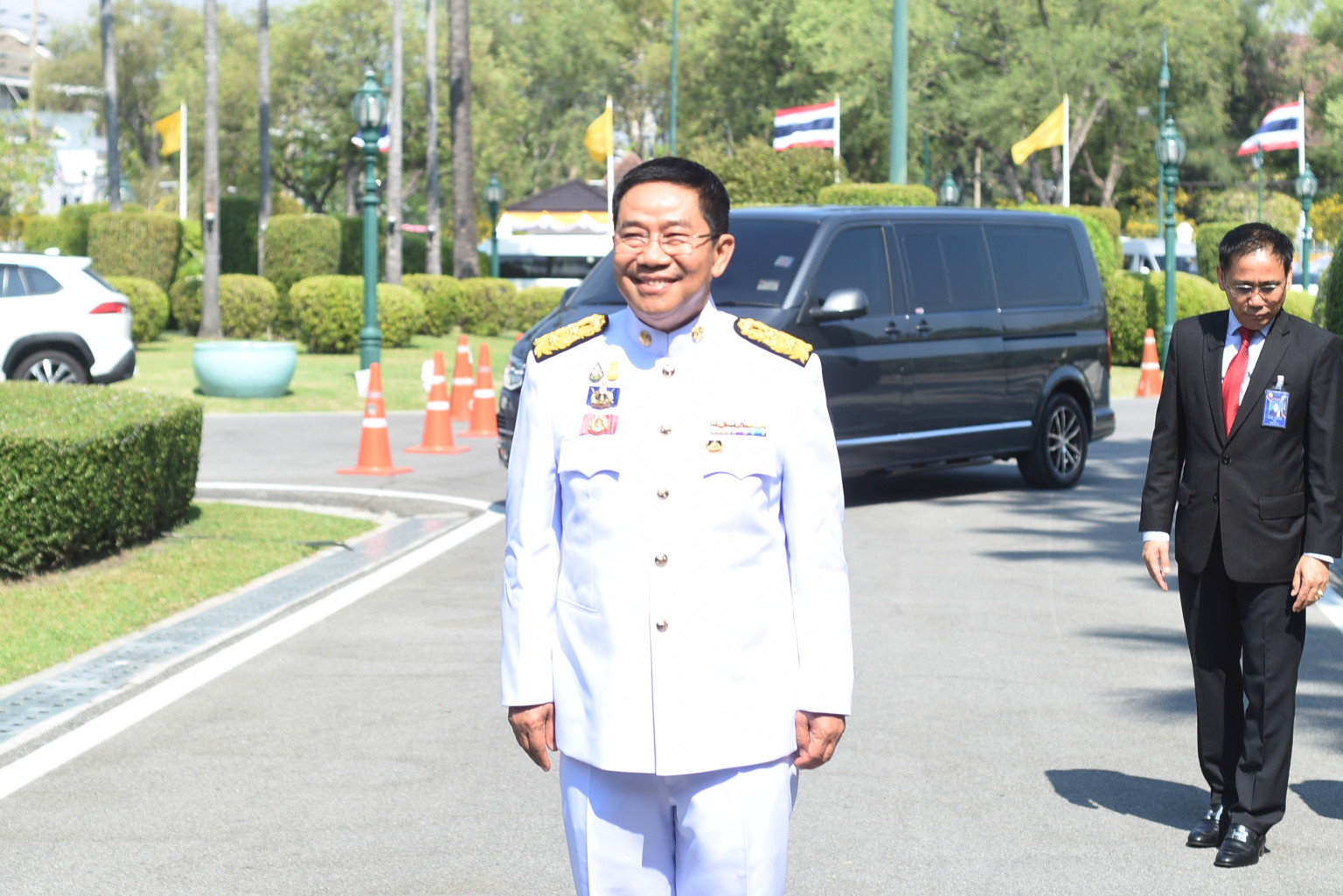 ทั้งนี้ ทำเนียบรัฐบาลได้มีการจัดเตรียมรถตู้สำหรับครม.ชุดใหม่จำนวน 3 คัน เพื่อออกเดินทางพร้อมกันไปยังพระที่นั่งอัมพร ฯในเวลา 16.20 น. โดยก่อนเดินทางออกจากทำเนียบรัฐบาล รัฐมนตรีใหม่ 12 คนได้ร่วมกันถ่ายรูปเพื่อเป็นที่ระลึก ที่ด้านข้างตึกสันติไมตรีด้วย
